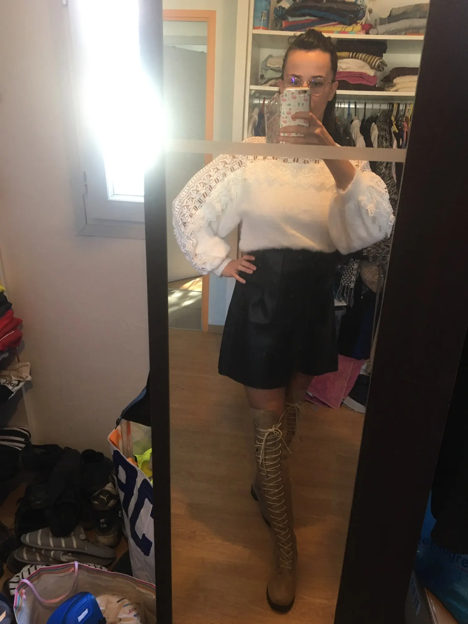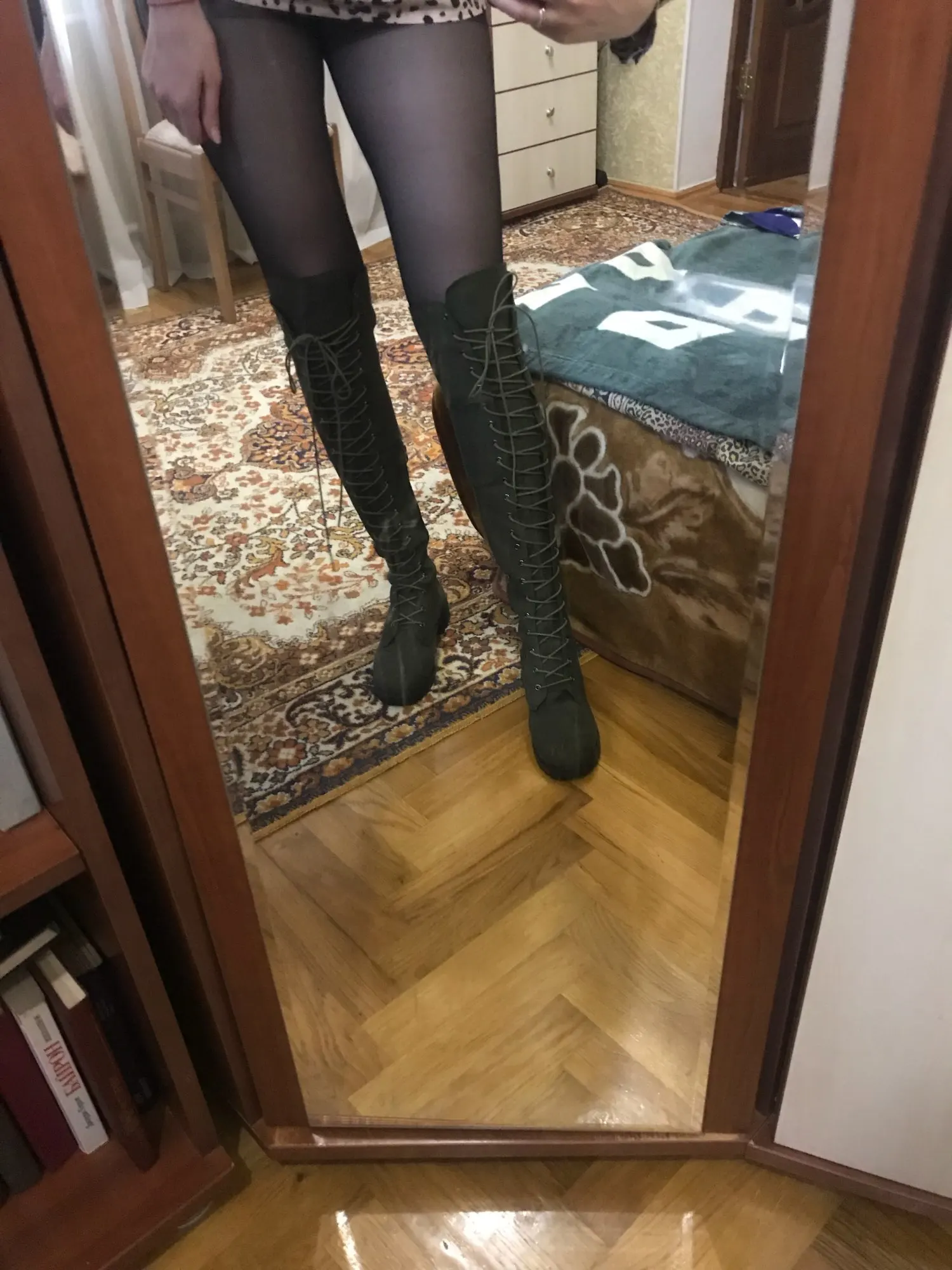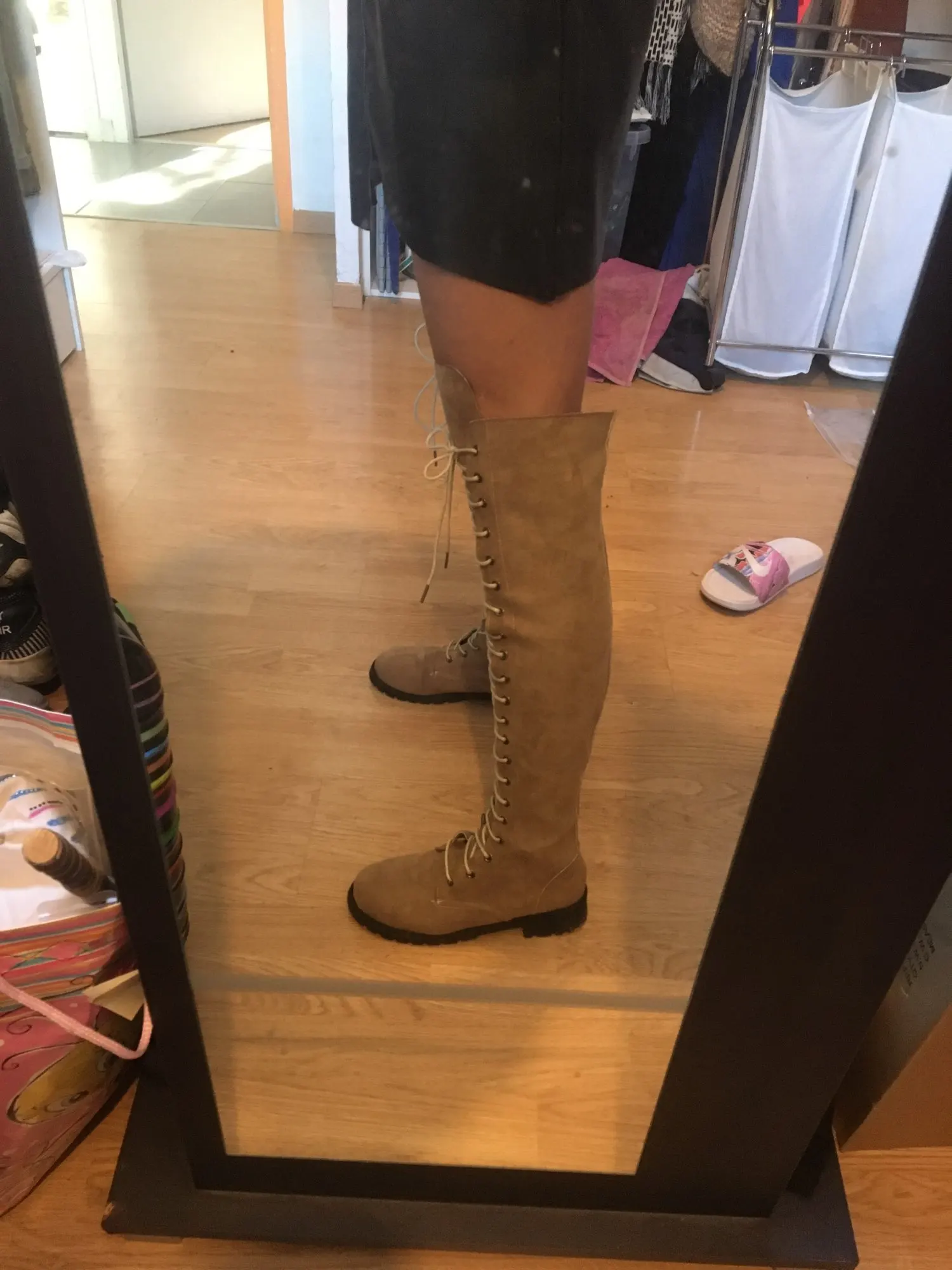 Счастливы! Обувь доставлена очень быстро и хорошо упакована. Небольшая нижняя часть шнуровки должна быть ровной. Прибывает выше колена менее чем на один метр 60.
