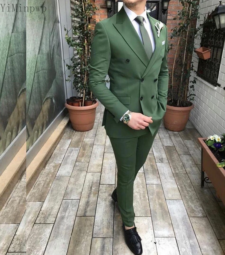 Мужской облегающий пиджак yimmerpwp, серо-зеленого цвета, двубортный пиджак с остроконечным лацканом, Свадебный костюм для жениха
