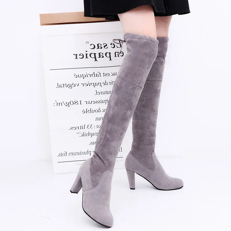 2019 женские сапоги до бедра; Модные замшевые сапоги выше колена на...