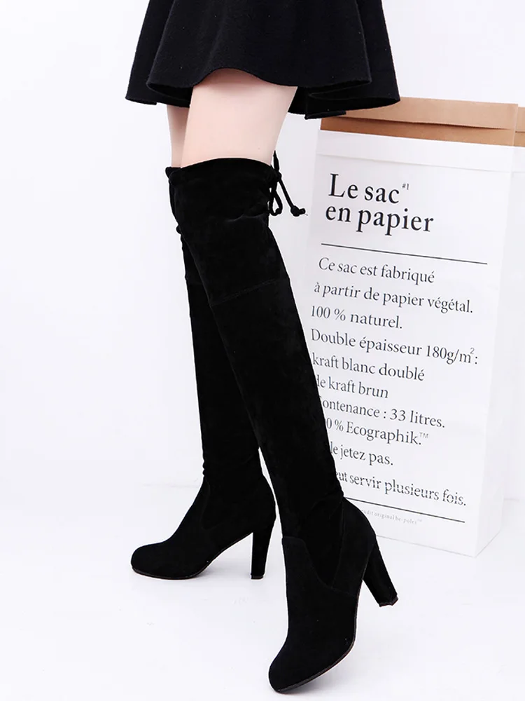 Сексуальные высокие сапоги до бедра, женские сапоги на высоком каблуке, зимняя обувь, женские сапоги из искусственной замши, женские зимние сапоги выше колена