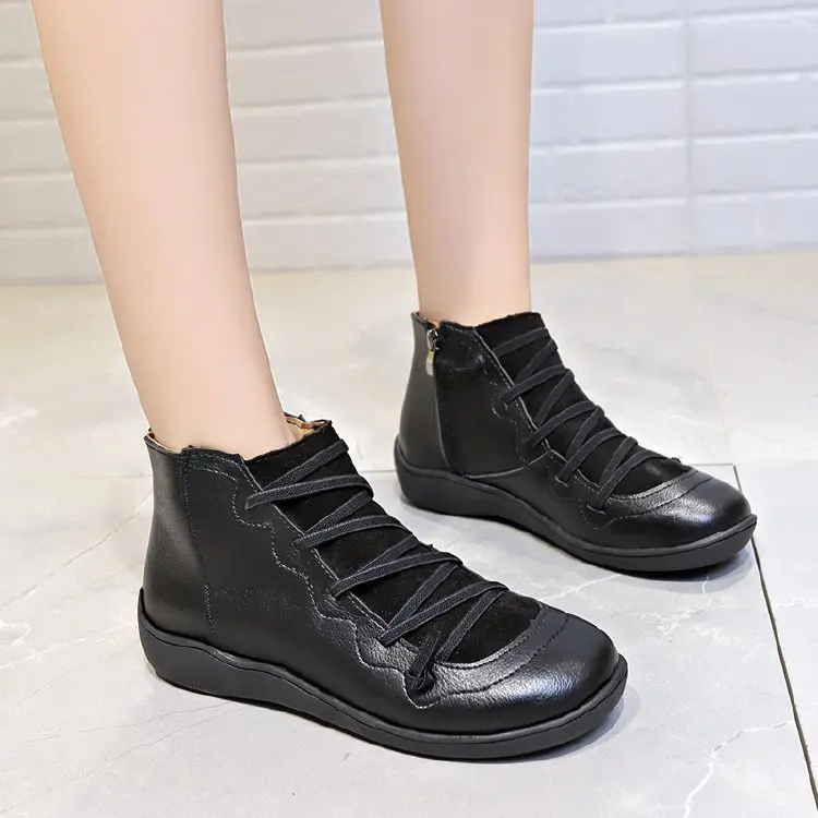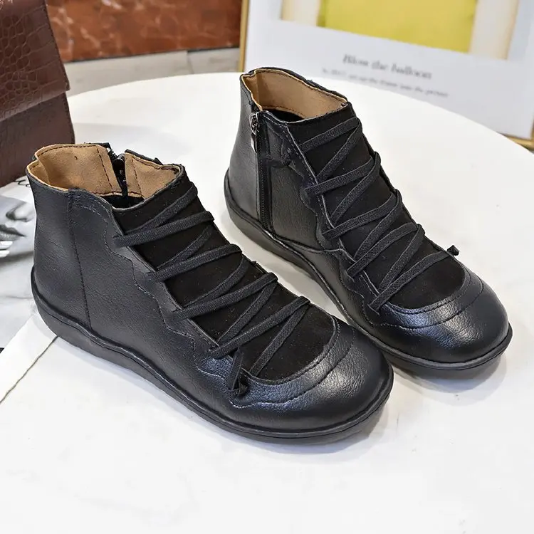Ботильоны женские из ПУ кожи, пикантные Винтажные ботинки с перекрестными полосками, обувь в стиле панк, плоская подошва, Осень-зима