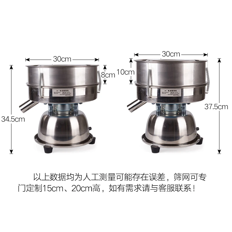 Основные параметры электрического вибрационного сита1. Спецификация заданного экрана: 10-500 ячеек и т. д., можно настроить по требованию2. Диаметр сита: 300 мм = 30 см3. Рабочее напряжение: 220 В/110 В4. Частота возбуждения: 1150 раз/мин5. Размеры: 33см * 32см/36смПримечание: выбор слишком плотного порошка для экрана медленный и пыльный, пожалуйста, выбирайте разумно!Трафаретная сетка Номер Использования: мука 30-50 сетка, торт 40 сетка, упаковка порошка 10-24 Сетка; Зерновая пудра 20-50 сетка; Порошок китайской медицины 50-80 сетка; жемчужная пудра 120-180 сетка; Пластиковая пудра 100-140 сетка; 3-D печать 316 порошок 300-500 сетка; Целлюлоза 80-100 сетка; Линия парфюмерная пудра 100-140 сетка.