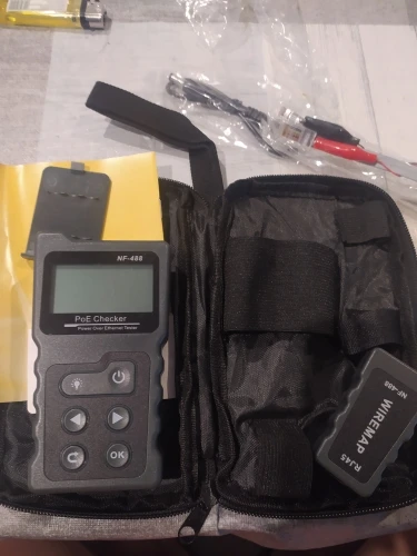 NF-488 PoE checker состоит из двух частей: эмиттера и пульта дистанционного управления. Он имеет такие функции, как стандартное и нестандартное Обнаружение PoE оборудования, онлайн-тест питания PoE, тест на непрерывность сетевого кабеля, тест питания постоянного тока, тест на обратную связь с переключателем и другие функции. Таким образом, он идеально подходит для мониторинга безопасности, проводов связи, интегрированной проводки и других систем слабого тока.Особенности:Проверьте информацию о стандартном/нестандартном PoE устройстве, например, о напряжении, полярности, среднем или конечном диапазоне.Определите тип PSE, это af или по стандарту.Проверка мощности в режиме реального времени, потребляемой устройствами PD в системах питания PoE.Проверьте открытый, короткий, перекрестный статус в сетевом кабеле.Проверьте мощность, потребляемую устройствами постоянного тока.Функция циклического тестирования переключателя.Характеристики:Характеристики передатчика:Функция непрерывности:Типы кабелей: STP/UTPМаксимальный диапазон тестирования: 600 мСопоставление проводов: эмиттер + пульт дистанционного управления, эмиттер + переключатель/routorФункция POE:Диапазон тестирования: DC5-60V коммутатор PoEСтандартная Идентификация: 802.3af/at (Стандартный/нестандартный)Мощность тестового диапазона: 0-18 ВтФункция питания:Диапазон измерения напряжения: DC0-60VДиапазон тестов тока: 0-3AДиапазон измерения мощности: 0-180 ВтДисплей: LCD 128*64 мм, с задней светильникЗащита от входного напряжения: DC48V, 5mAМаксимальный рабочий ток: ≤ 80 мАLoopback: совместим с переключателем 10M, 100M,1000MПитание: 3*1,5 V элемент питания AAА (в комплект не входит)Характеристики пульта ДУ:Порты: RJ45Функция: сопоставление проводов для сетевого кабеляЗащита от входного напряжения: DC48V, 5mAМатериал: АБС-пластикРазмер эмиттера: прибл. 12,5*7*2,8 см/4,92*2,76 * 1.1inРазмер пульта: прибл. 6,5*3,7*2,3 см/2,56*1,46 * 0.91inВес эмиттера: прибл. 123g/4,33 ozВес пульта: прибл. 24 г/0,86 унцийВес посылка: прибл. 301 г/10,64 унцийРазмер посылка: прибл. 22,5*11*4 см/8,86*4,33 * 1.58inПосылка:1 * эмиттер1 * пульт дистанционного управления1 * тестовая линия зажима крокодила2 * провод кабеля1 * сумка для переноски1 * Руководство пользователя (на английском языке)