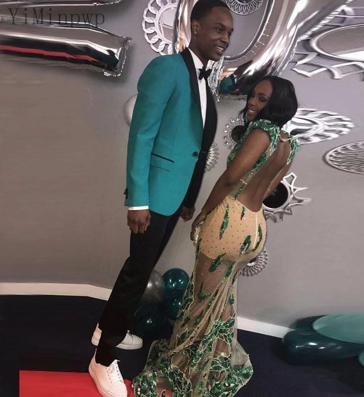 Бирюзовый мужской костюм YiMinpwp, костюмы с отложным воротником на одной пуговице для выпускного вечера, приталенный Блейзер, куртка, мужские смокинги, свадебные костюмы для жениха, пальто + брюки