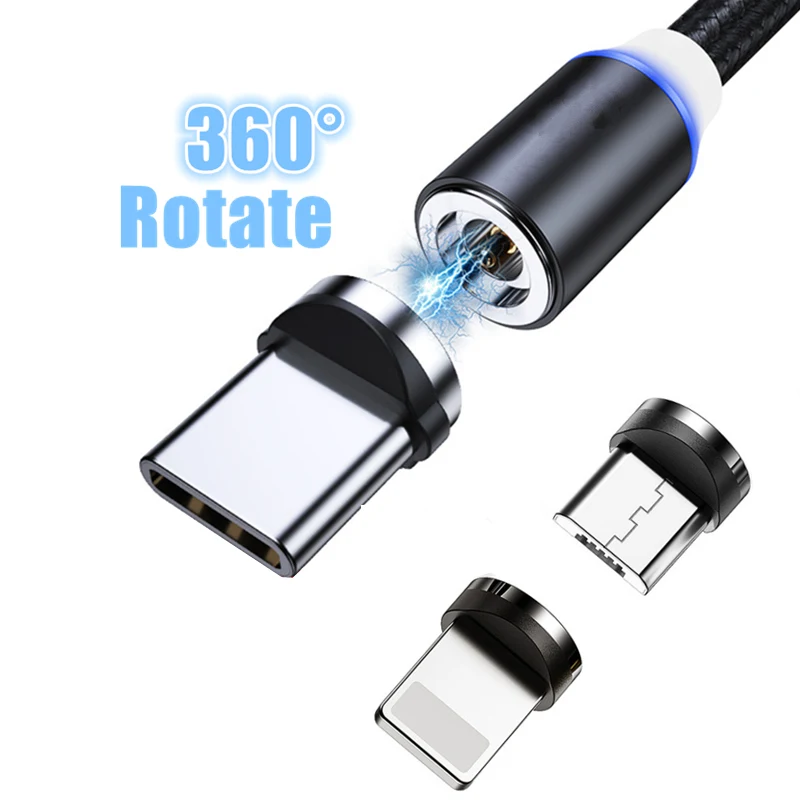 Магнитный зарядный кабель Micro USB Type-C, с поворотом на 360 град...