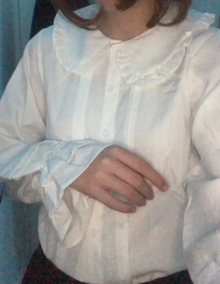 Белая рубашка с длинным рукавом для девочек-подростков, женская, демисезонная, в стиле преппи, кавайная, с оборками, с воротником в стиле Питера Пэна, Лолита, блузки, топы