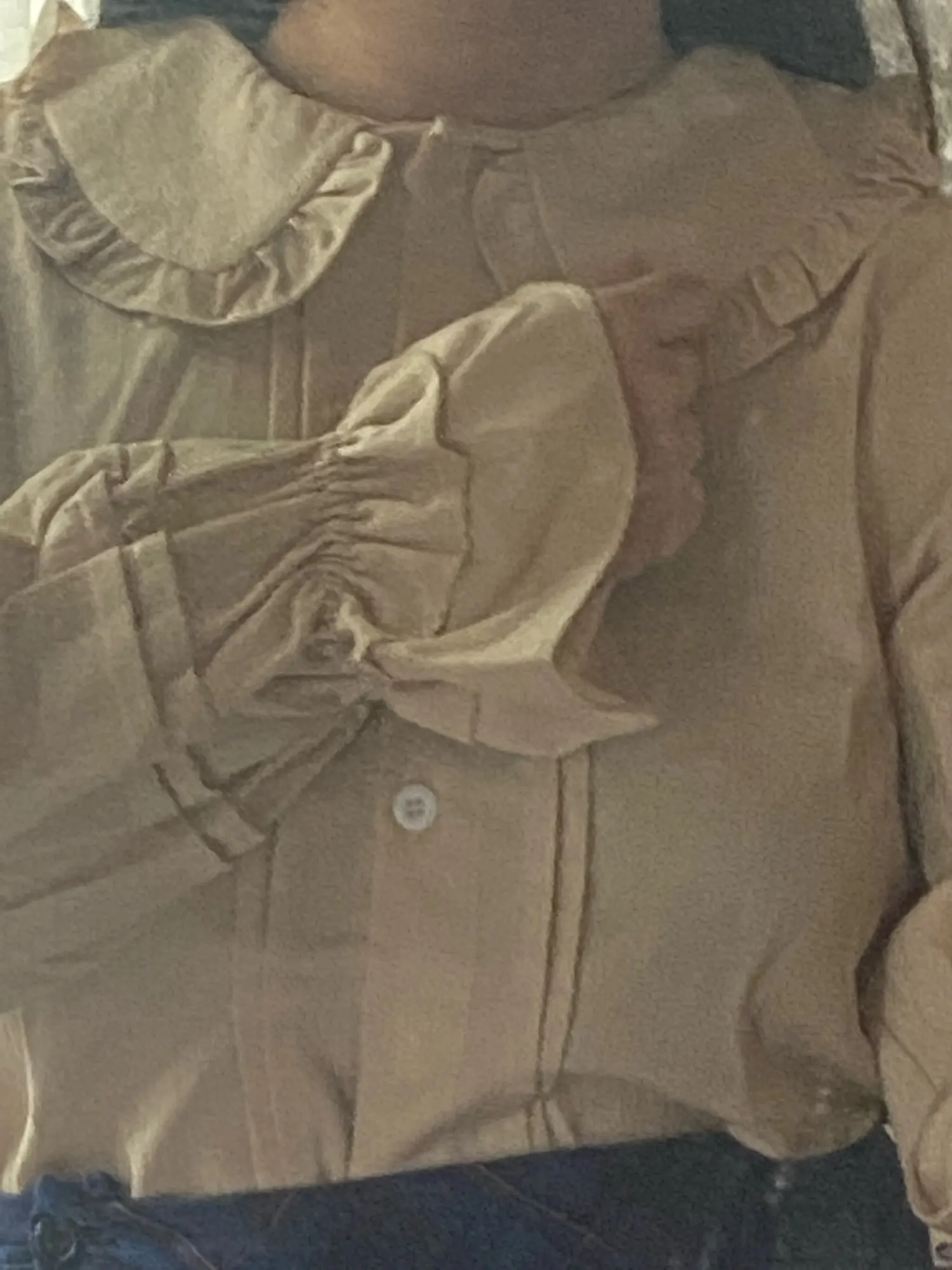 Рубашка была темнее (как темно-бежевый цвет), чем на фото, но в противном случае она была довольно точной! В области груди и шеи было немного туго, но ничего слишком серьезного :)) в целом рубашка очень понравилась, и она тоже была довольно удобной