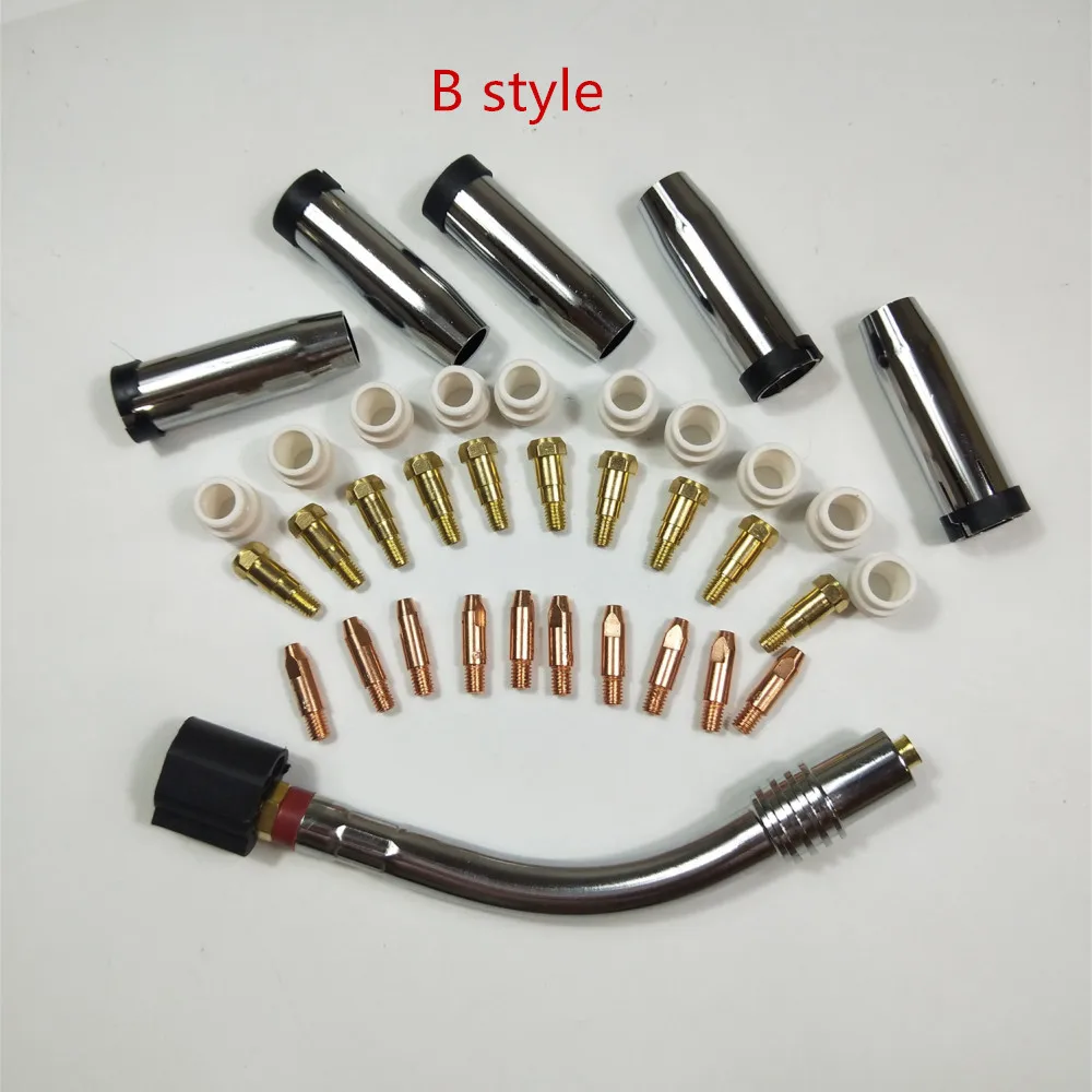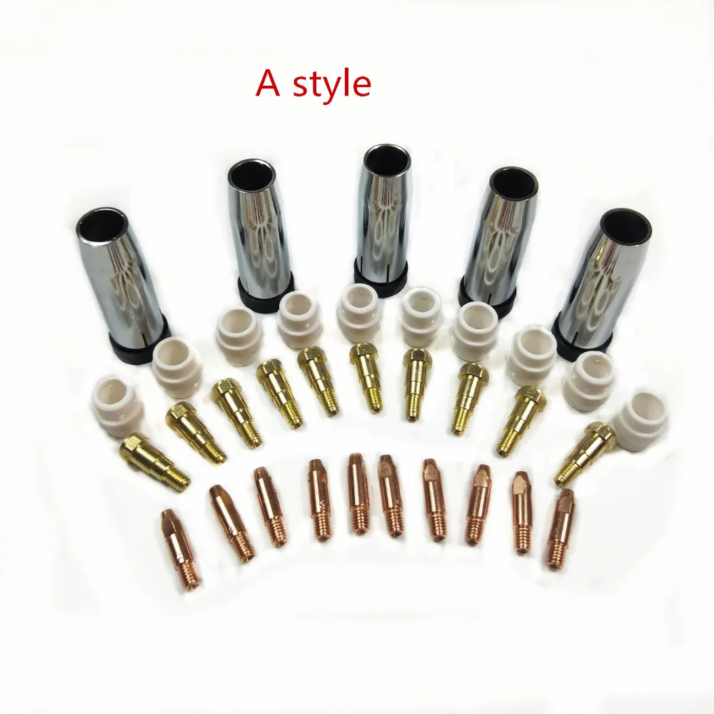 35 шт., расходные материалы, наконечник + электрод + Защитные чашки, зажим, газовое кольцо, гофонарь Binzel MIG MAG 24 кд, используется для сварочного аппарата MIG MAG