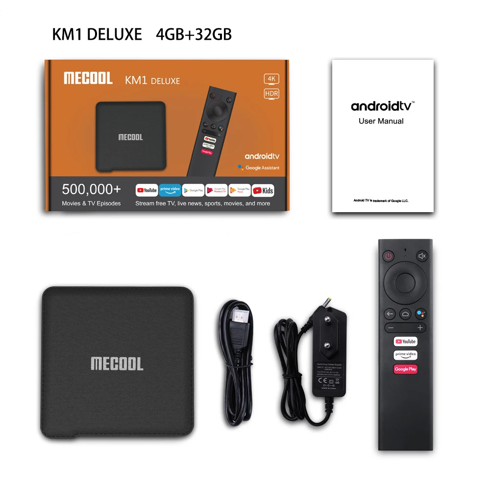 ТВ-приставка Mecool KM1 ATV с сертификатом Google, Android 10,0, 4 ГБ, 64 ГБ, Amlogic S905X3, Android TV, 4G32G, 2 ГБ, 16 ГБ, Prime Video, 4K, двойной Wi-Fi