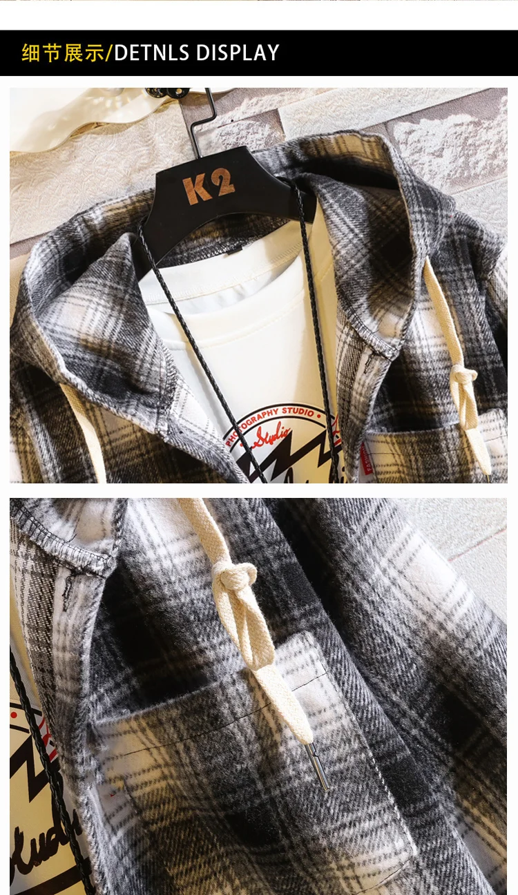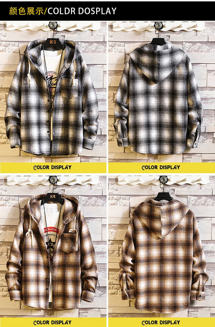 Повседневная брендовая клетчатая рубашка с капюшоном, мужские флисовые красные рубашки с длинными рукавами, новинка 2022 года, весна-осень, большие размеры, M-6XL