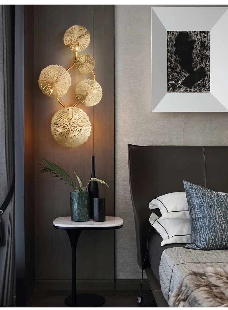 Nordic Luxury настенный светильник современный лист лотоса Art настенный светильник s прикроватный светильник настенные бра для гостиной домашний декор светильники G4 лампа