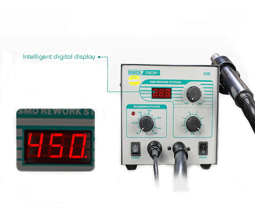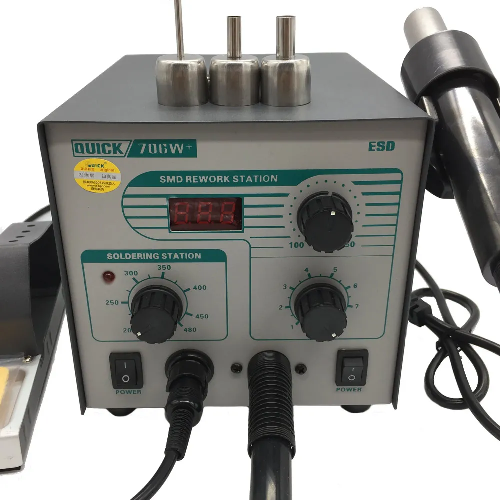 Быстрый 706 Вт + цифровой дисплей пистолет горячего воздуха + Антистатическая температура Сварщик без свинца ремонтная станция 2 в 1 с 3 насадками