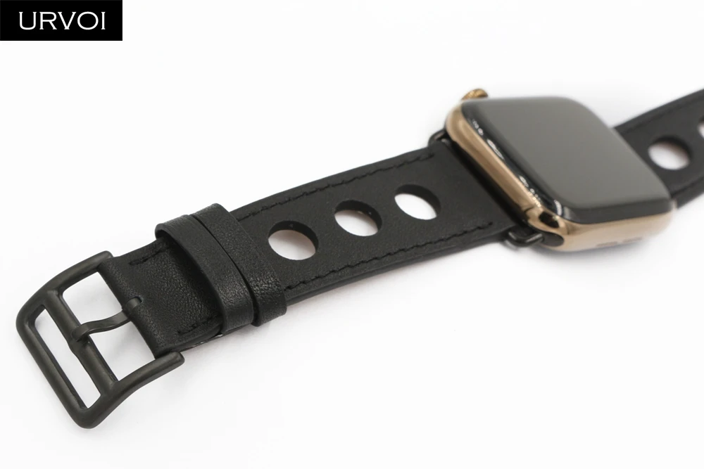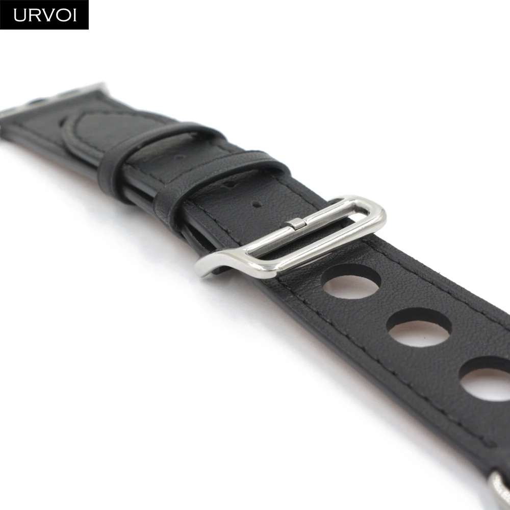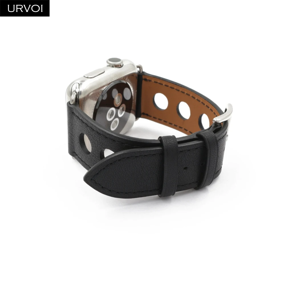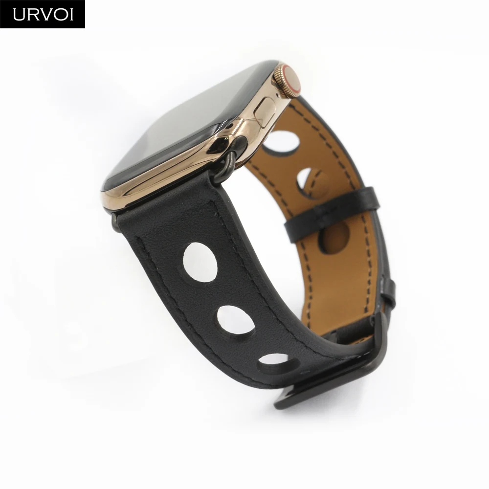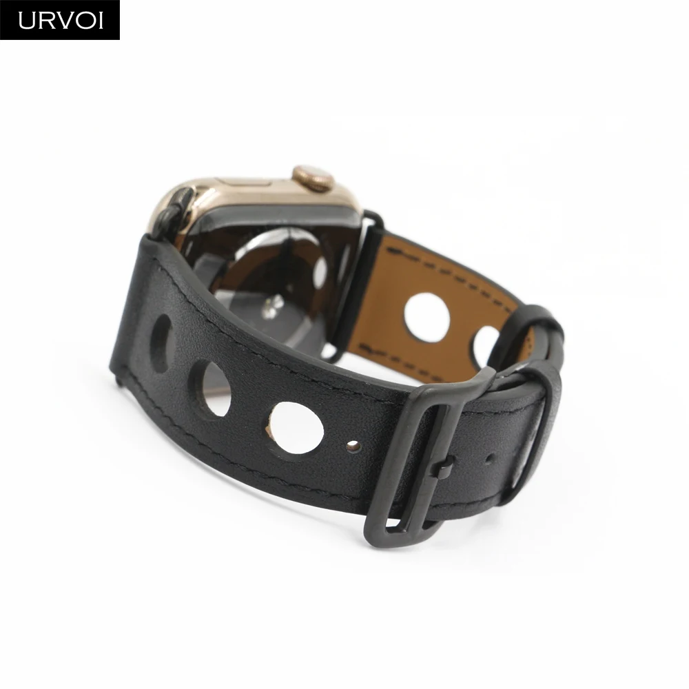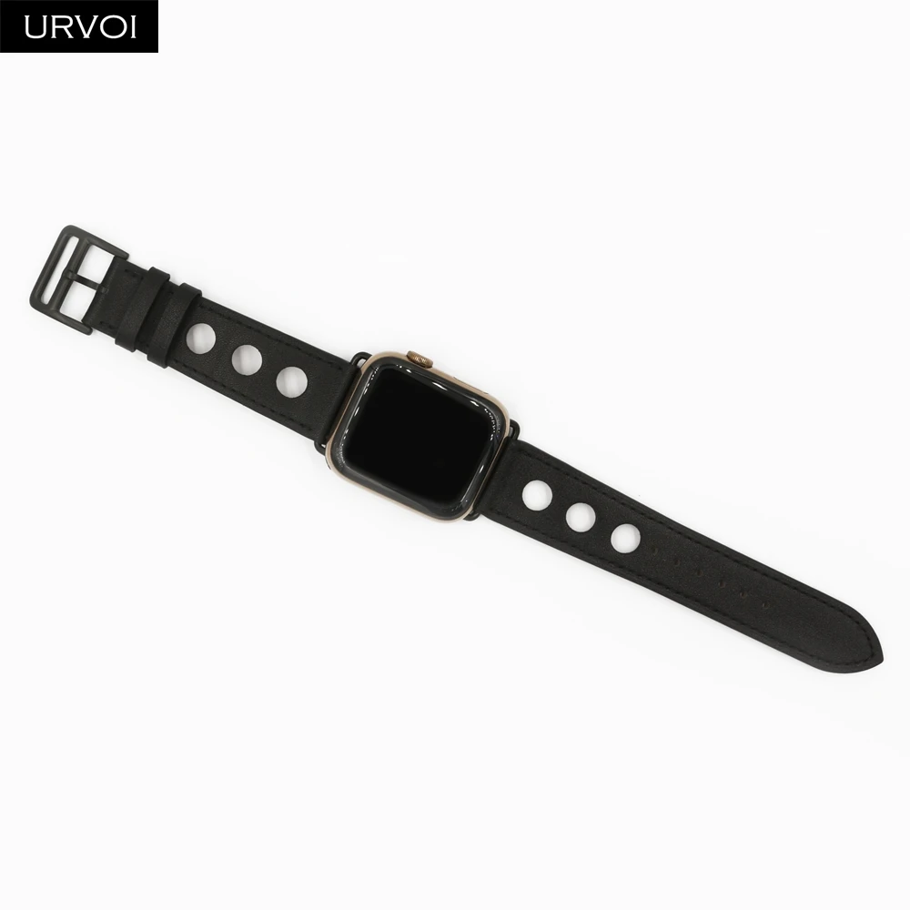 Ремешок URVOI для apple watch series 7 6 SE 5 4 3, кожаный браслет для iwatch racing, черный