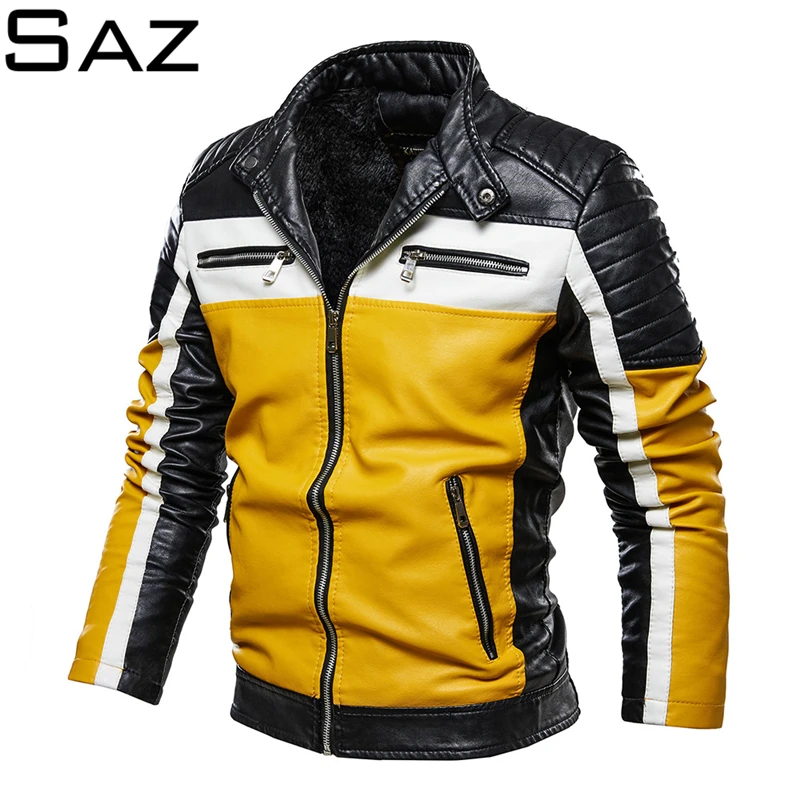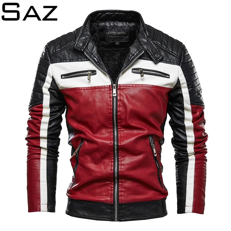 Мужская повседневная Байкерская кожаная куртка Saz с круглым вырезом