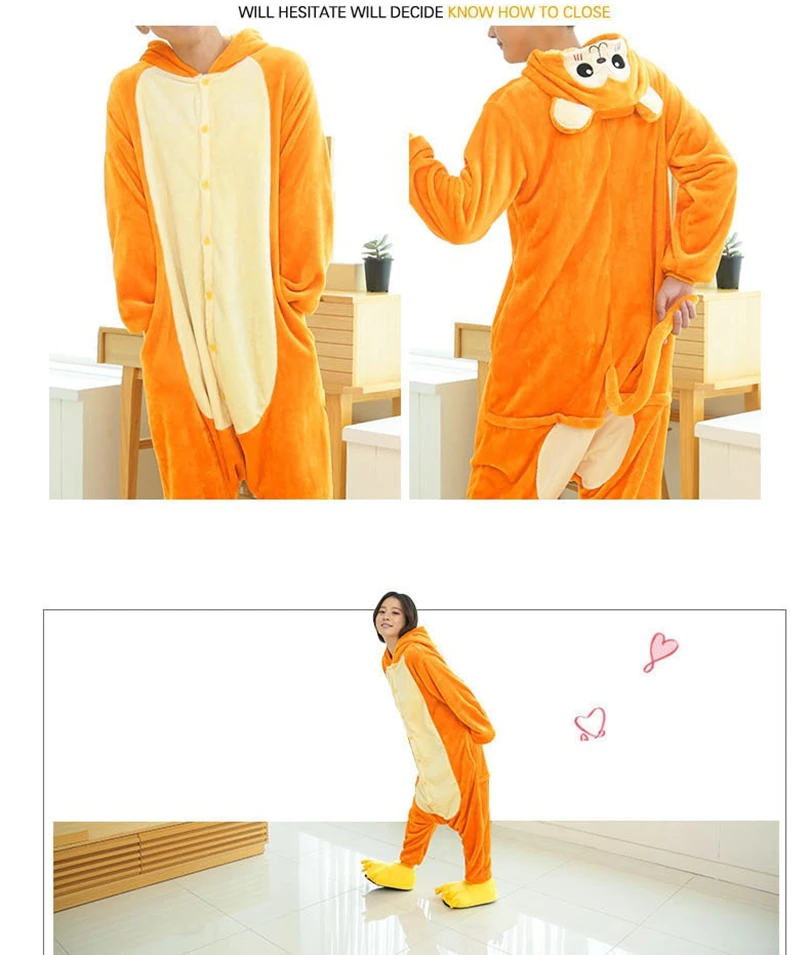 Комбинезон-Кигуруми для взрослых, с капюшоном, теплый