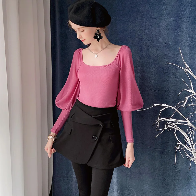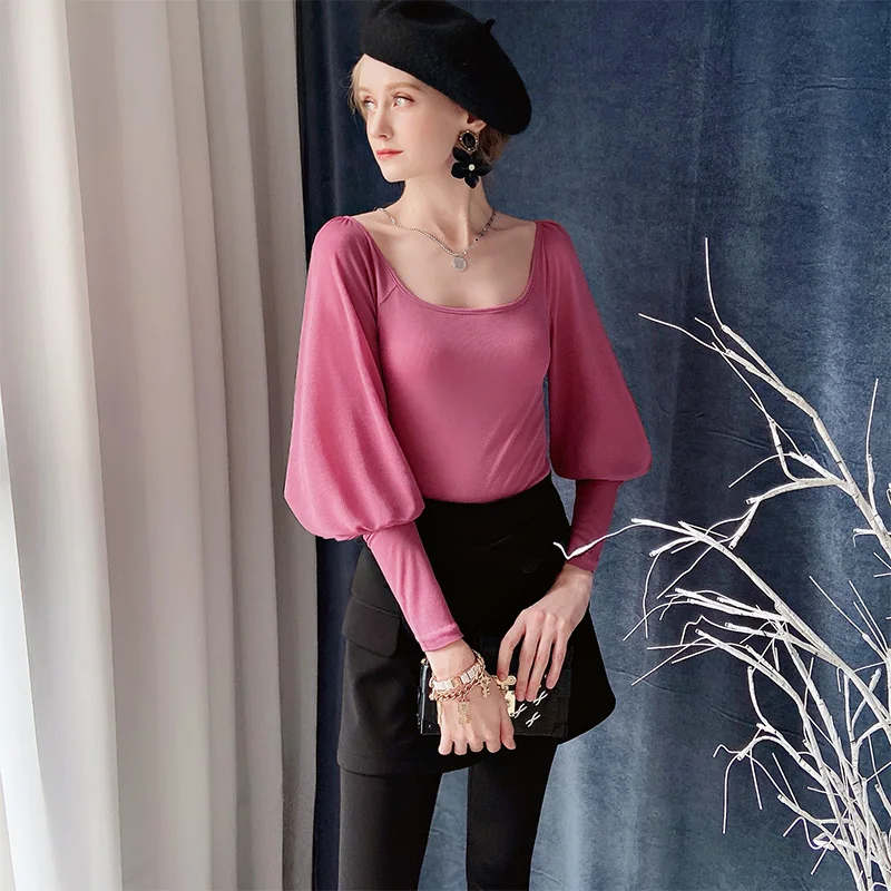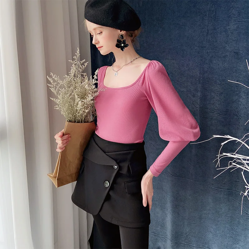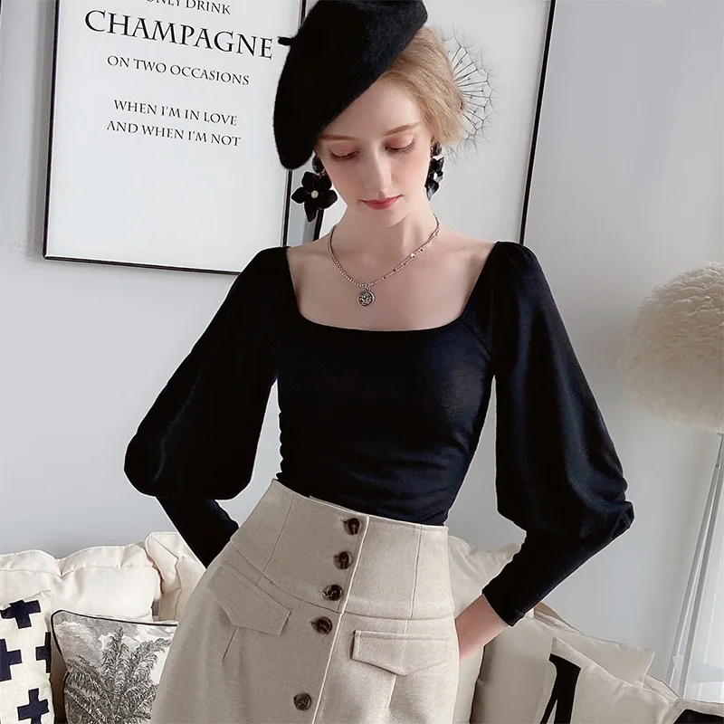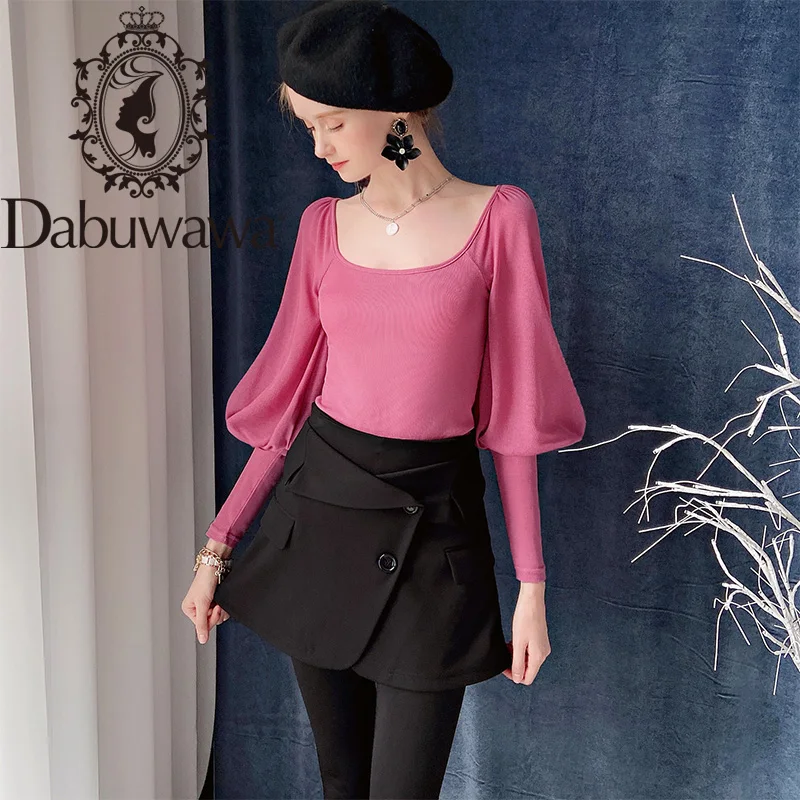 Футболки женские Dabuwawa, Осенние, сексуальные, однотонные, с рукавами-фонариками, квадратным вырезом, приталенные, повседневные, футболки, DT1CTS003