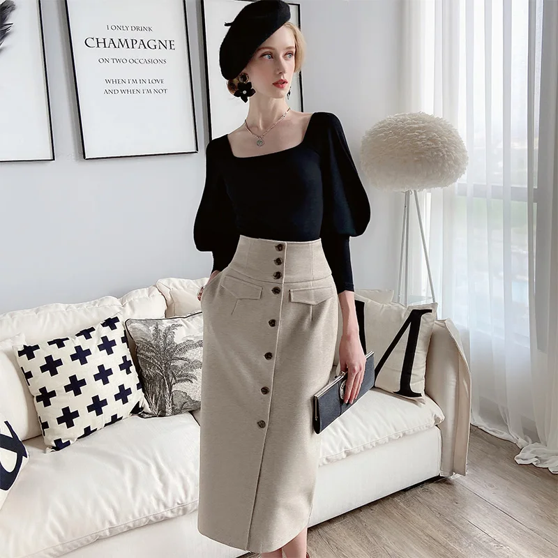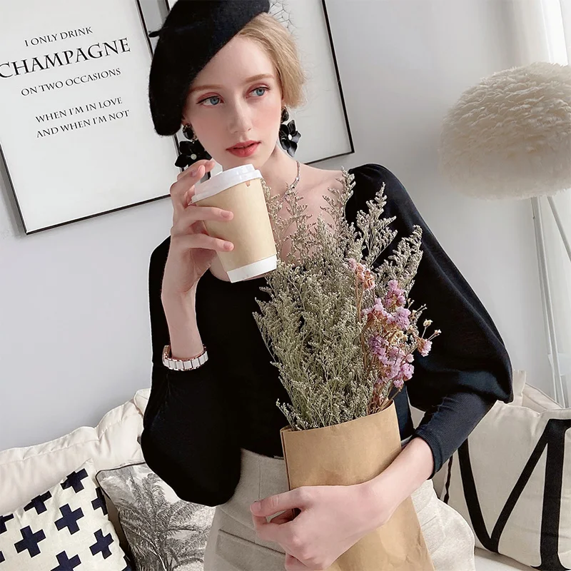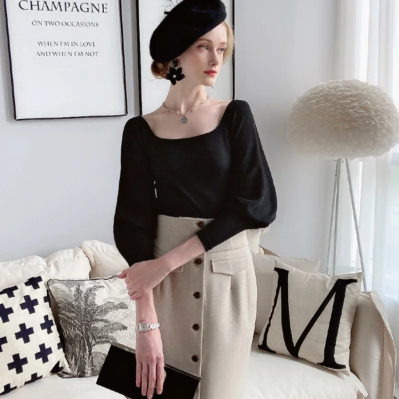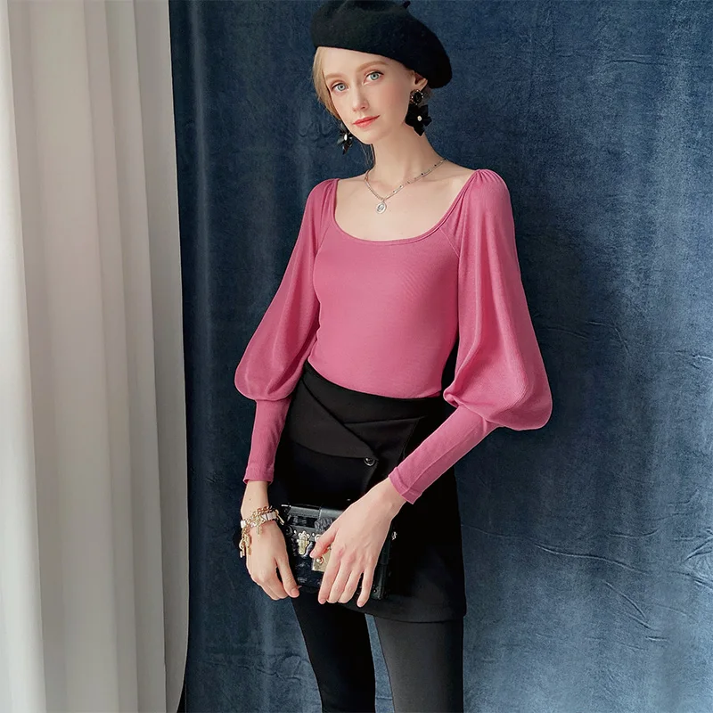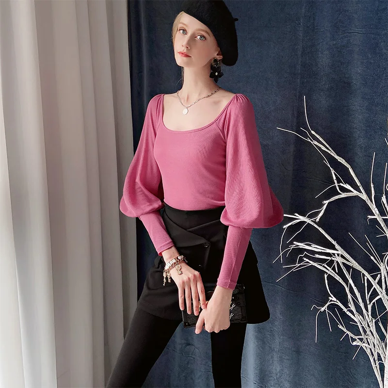 Футболки женские Dabuwawa, Осенние, сексуальные, однотонные, с рукавами-фонариками, квадратным вырезом, приталенные, повседневные, футболки, DT1CTS003