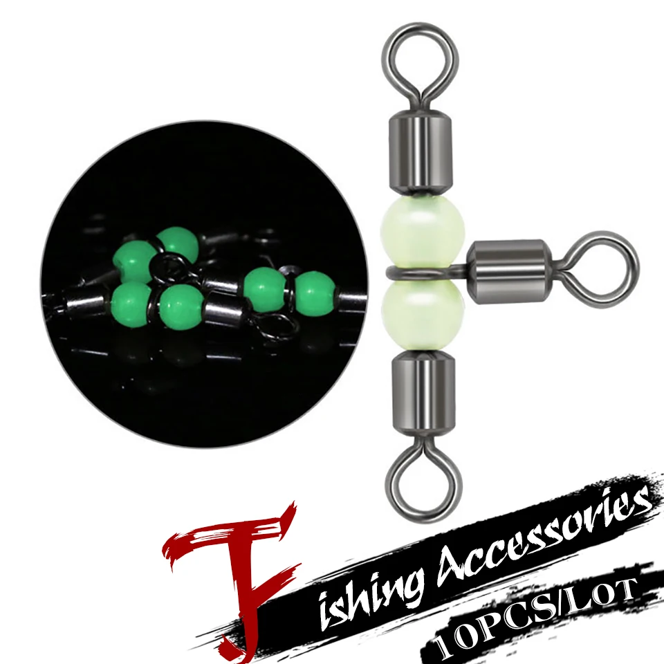 10 шт.лот светящийся поперечный тройной рыболовный соединитель, поворотный крючок для морской рыбалки, снасти, аксессуары, высокое качество, рыба