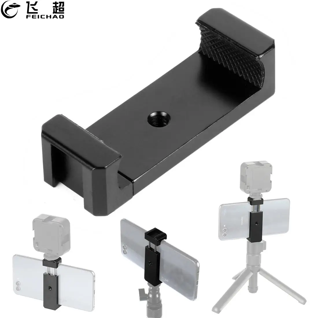Feichao портативный мобильный телефон зажим держатель Зажим Штатив Адаптер Холодный башмак крепление 1/4 "отверстия алюминиевый сплав для iPhone HUAWEI смартфон Vlog аксессуары для селфи камеры
