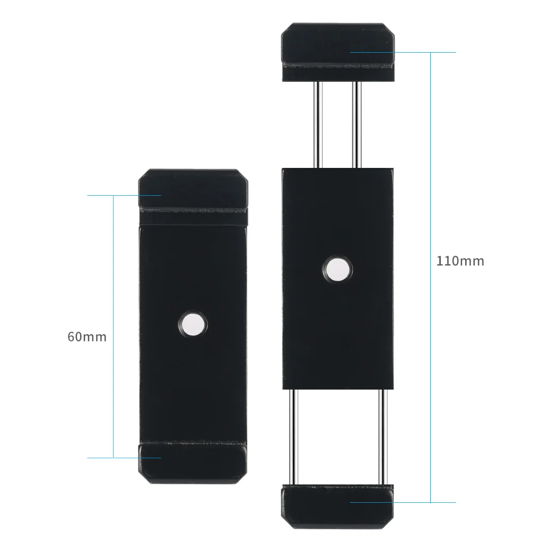 Позволяет установить ваш смартфон на штатив/селфи палку и т. Д., идеальный помощник для смартфонов селфи/live и т. Д.Расстояние открытия 6-11 см, подходит для большинства смартфоновС креплением для холодной обуви светодиодный светильник/внешний микрофон и другие аксессуары для видеоС 1/4 дюйма резьбы по низу и сзадиКорпус из алюминиевого сплава, супер прочныйМатериал: алюминиевый сплавРасстояние открытия зажима: 6 - 11 смЗажим Размеры: 76x30x19,5 мм