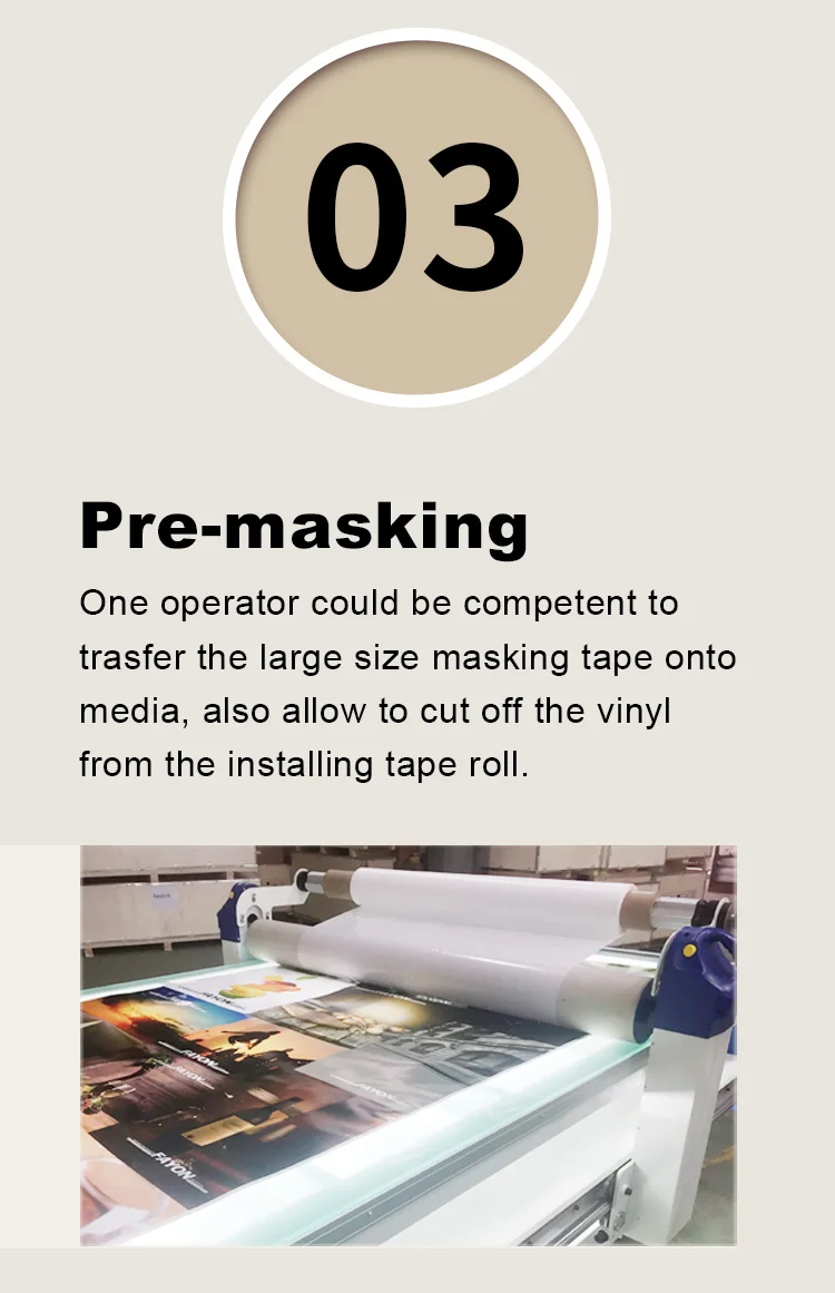 Требуется только один человек для крепления цифровых принтов или клейких наклеек на различные формы штрихов. Крепление на пенопластовую доску, гофрированные панели, металлические панели, баннеры и стекло, все без пузырьков.