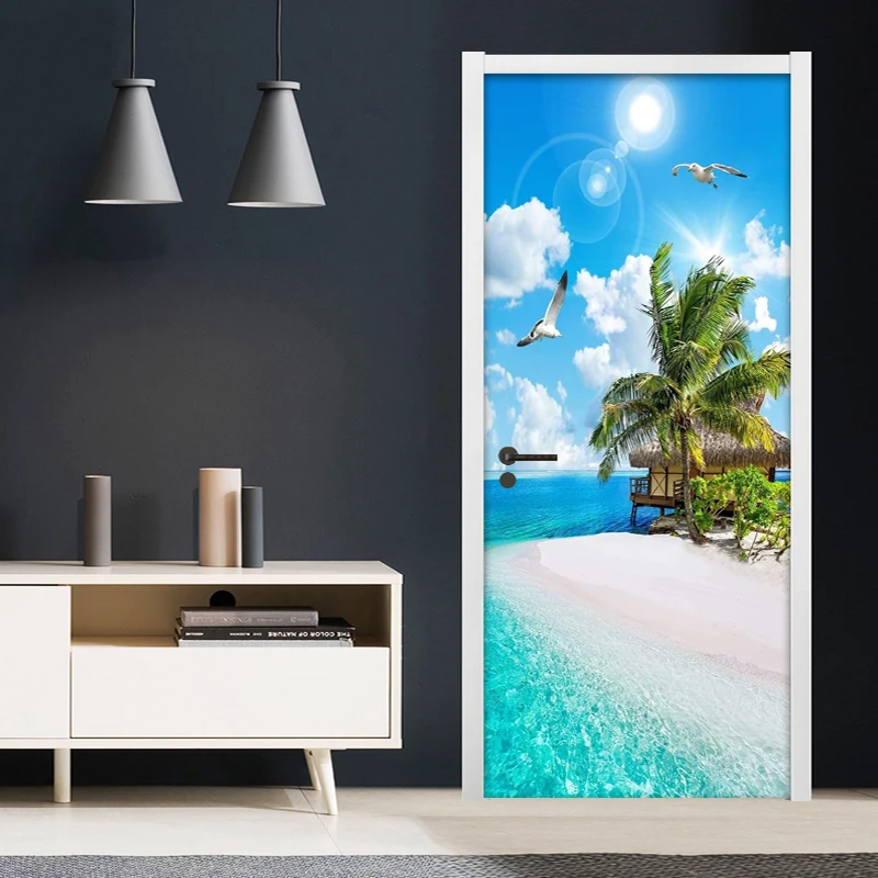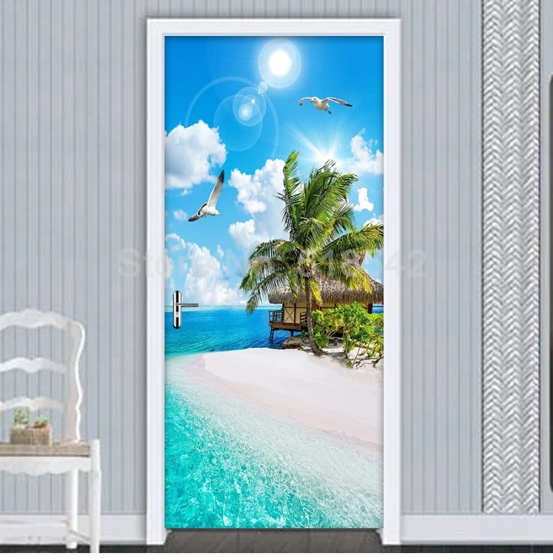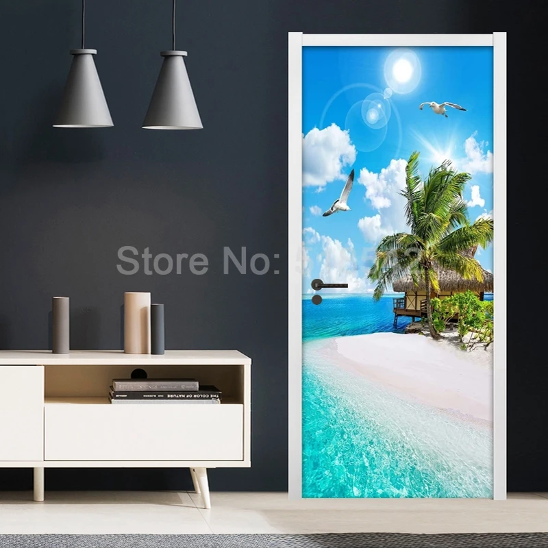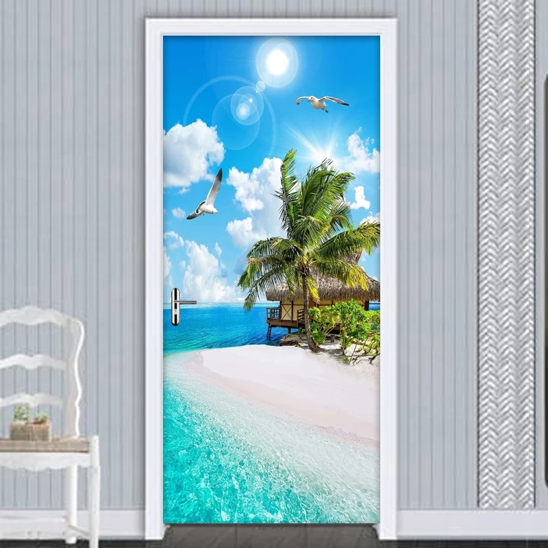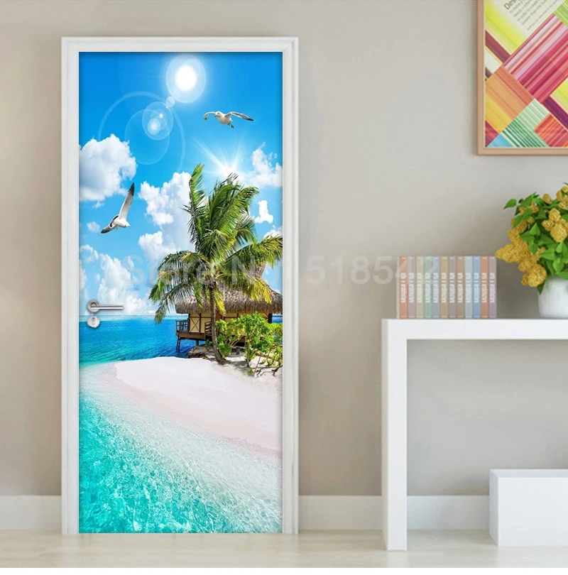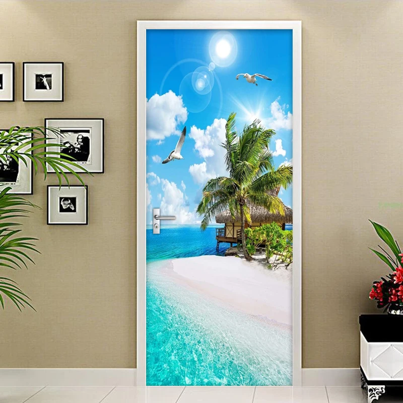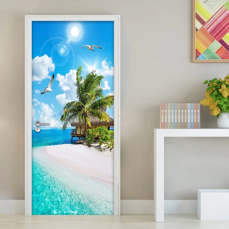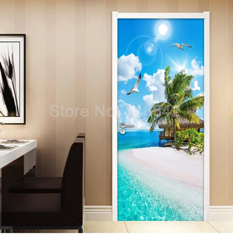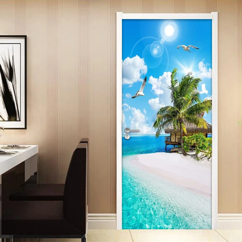 Песчаный пляж морской пейзаж 3D наклейка на дверь ПВХ водонепроницаемый самоклеящийся настенные наклейки с росписью гостиная спальня дверная наклейка s обои