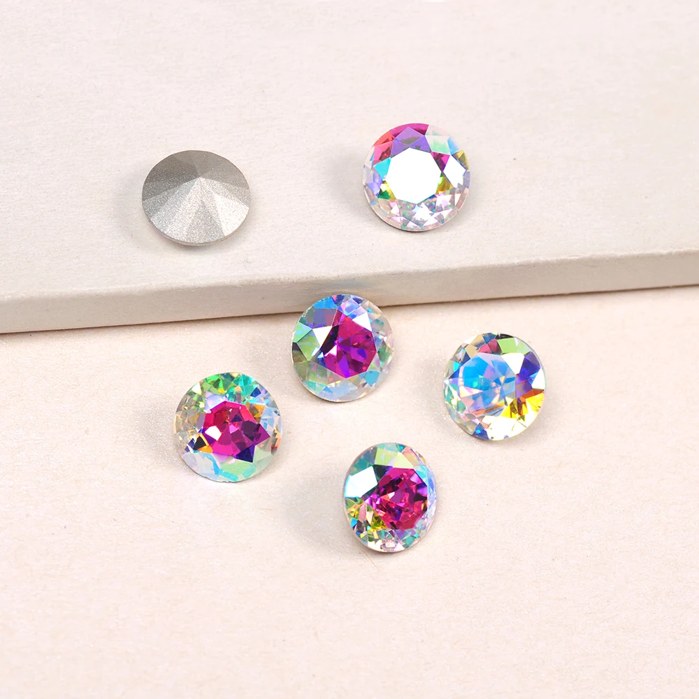 Стразы с кристаллами AB Glass шьют на Стразы круглые К9 острые заст...