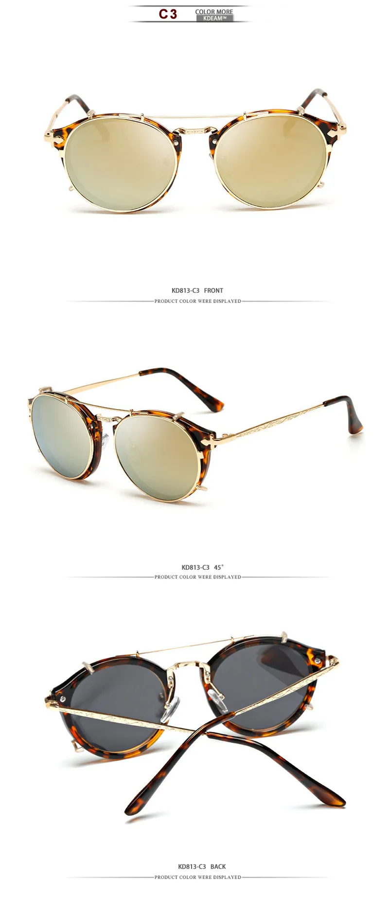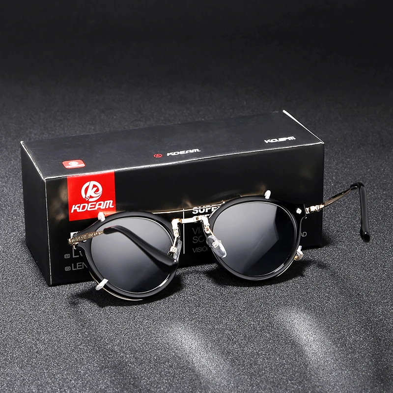 Мужские и женские круглые солнцезащитные очки KDEAM, круглые солнцезащитные очки в стиле стимпанк, с резными дужками в стиле барокко, универсальный размер в оригинальной коробке KDEAM