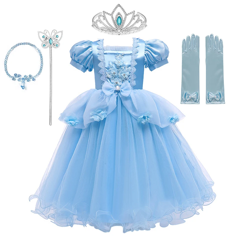 Роскошное платье Золушки VOGUEON, платье принцессы с аппликацией в виде цветов и бисером для девочек, кружевной сетчатый нарядный Детский костюм для дня рождения