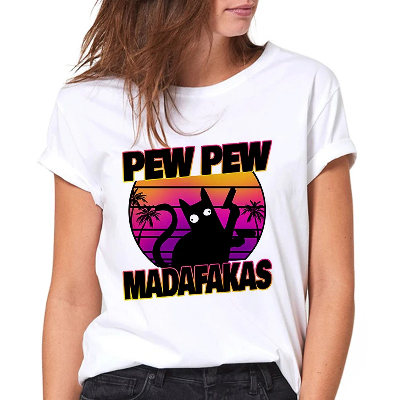 Женские футболки с принтом Pew Madafakas, летние футболки с графическим принтом 2020, Забавные футболки для женщин, свободные футболки Harajuku, женские футболки