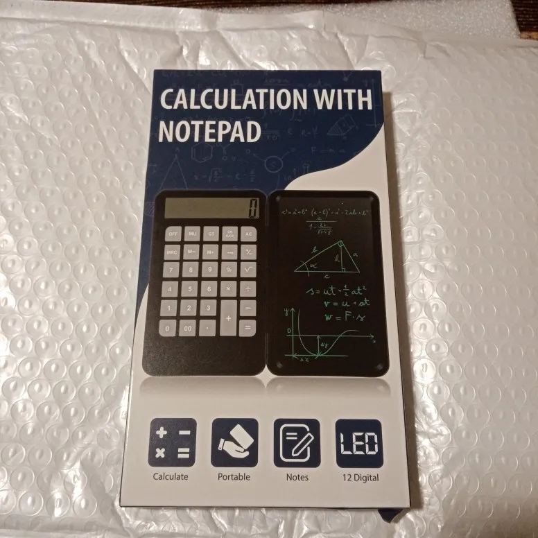 Этот калькулятор мне пришел по акции Халява, пришёл достаточно быстро все целое и работает отлично (калькулятор считает а доска для записей прекрасно пишет и стирает) Стилус держится на магните снаружи - главное чтобы не потерялся. Упакована посылка была слабовато пакет с одним слоем пупырки, и калькулятор в этом пакете болтался, но все целое и калькулятор и коробка. Огромное спасибо за такие акции.