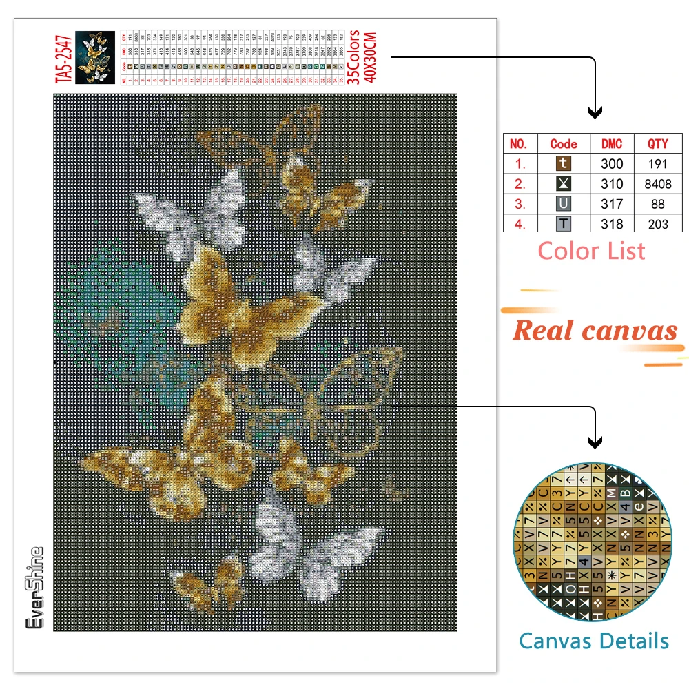 EverShine алмазная живопись, полная квадратная бабочка, вышивка крестиком, алмазная вышивка стразы, искусство, животные, бусины, строительный подарок