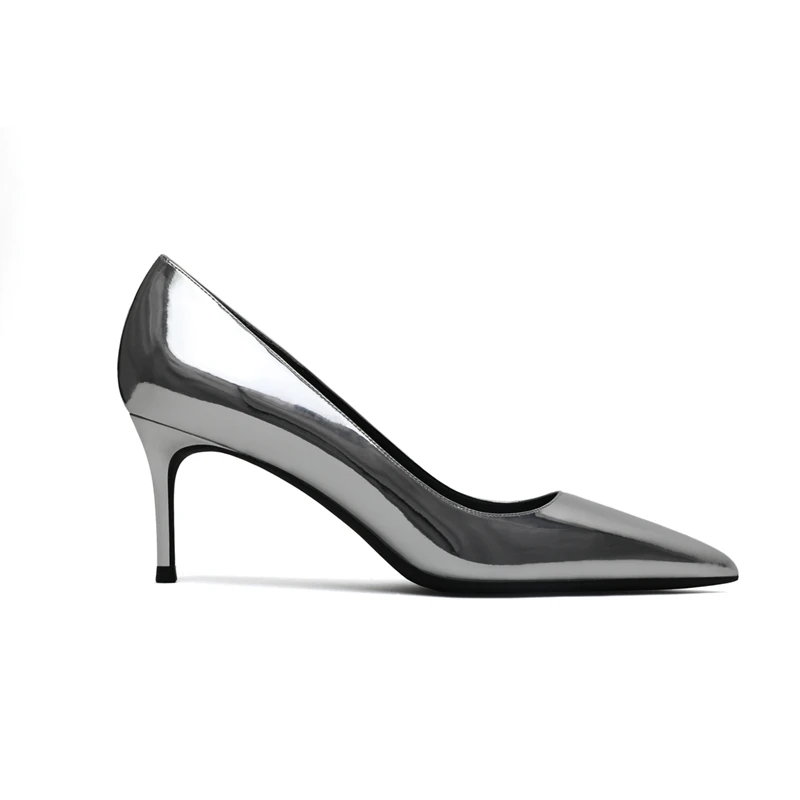 Туфли-лодочки из лакированной кожи с острым носком, на очень тонком...