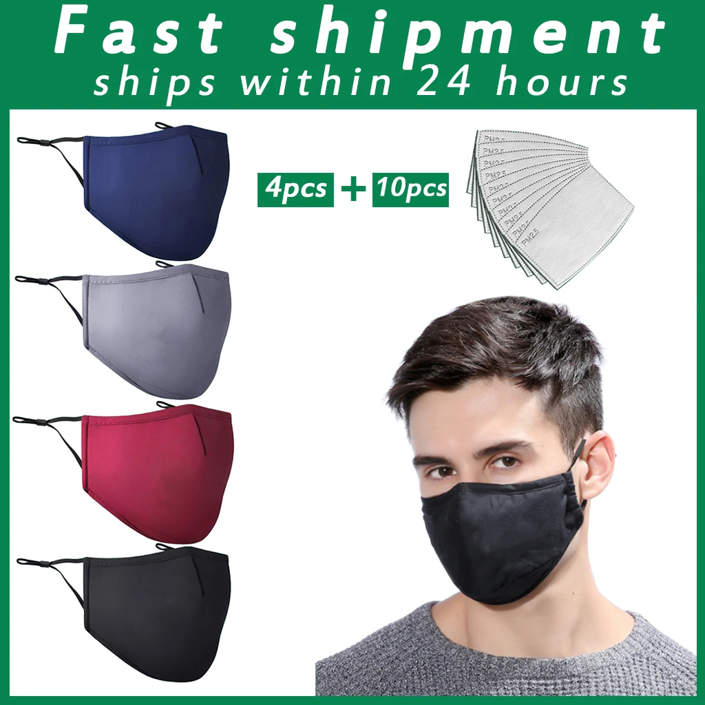 Маска для лица с фильтром PM2.5, многоразовая, хлопковая, с фильтром с активированным углем, 10 шт.