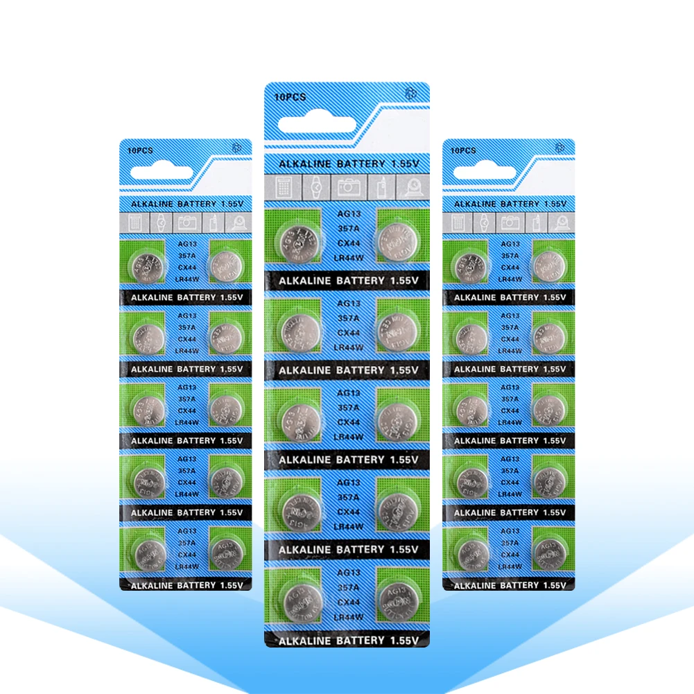 Кнопочная батарейка AG13 A76 LR44, батарейка для часов D303, D357, D76A, G13, G13A, GP76, GPA76, GS14, L1154, LR1154, 30 шт.