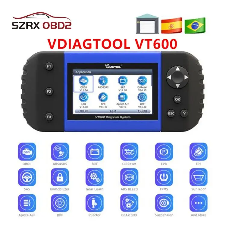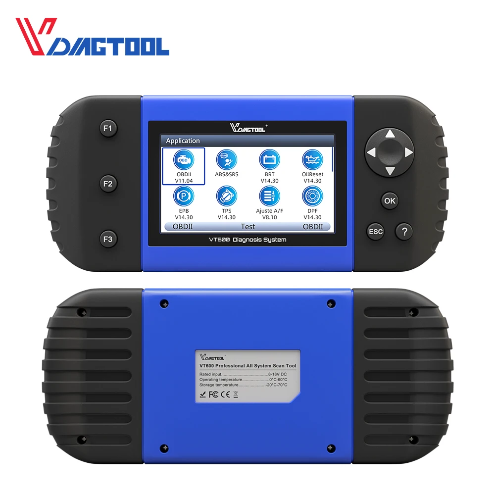 VDIAGTOOL VT600 OBD2 Scanner-это профессиональный уровень устройство для автомобильной диагностики, ручной инструмент, он может поддерживать OBD1 OBD2 которых от 1996-2019, И он предлагает комплексные система покрытия для широкий спектр Автопроизводителей. Сочетает в себе все системы диагностики, включая двигатель, коробка передач, ABS, подушка безопасности, инструмент, руль и т. д., И наиболее востребованных функций обслуживания масла, EPB,SAS, яркая, кровотечение из АБС, ТПА (TPS), система контроля давления в шинах, DPF,IMMO, Кодирование инжектора, Шестерни обучения, коррекция одометра и т. д, такой же, как и NT650, VT600 создана для того, чтобы взять ваш диагностический опыт на новый уровень.