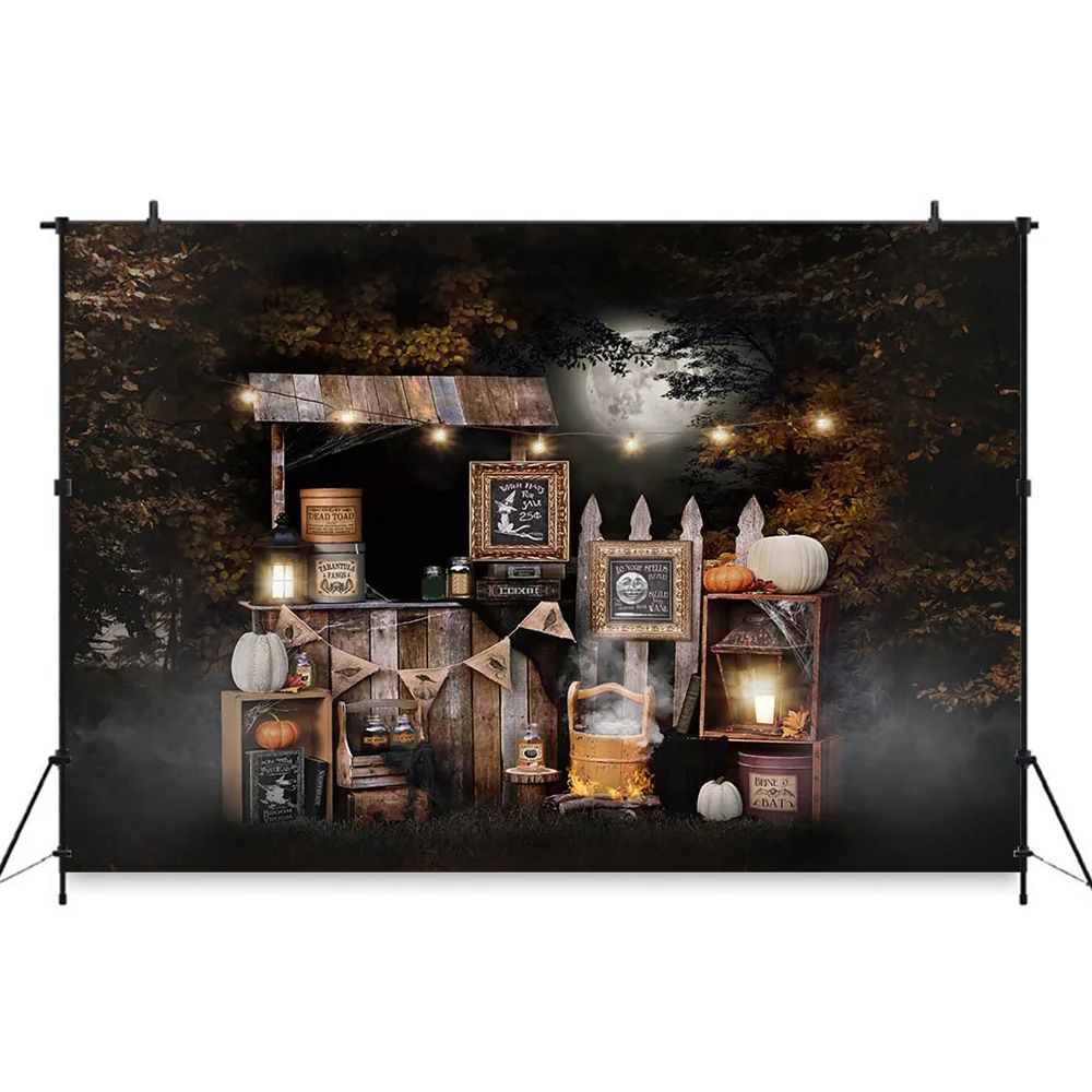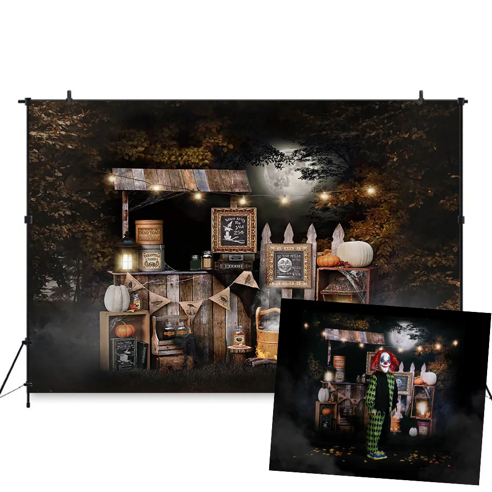 Фон для фотосъемки с изображением леса Луны ужасной ночи тишины деревьев вечеринки