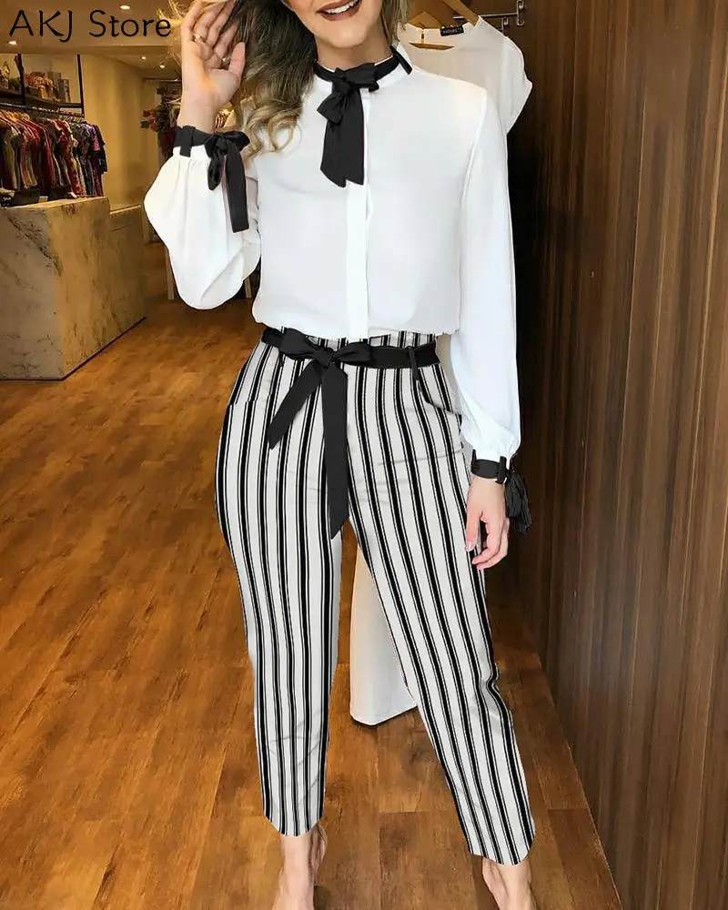 Женский повседневный комплект из топа и брюк в горошек, Офисная Раб...
