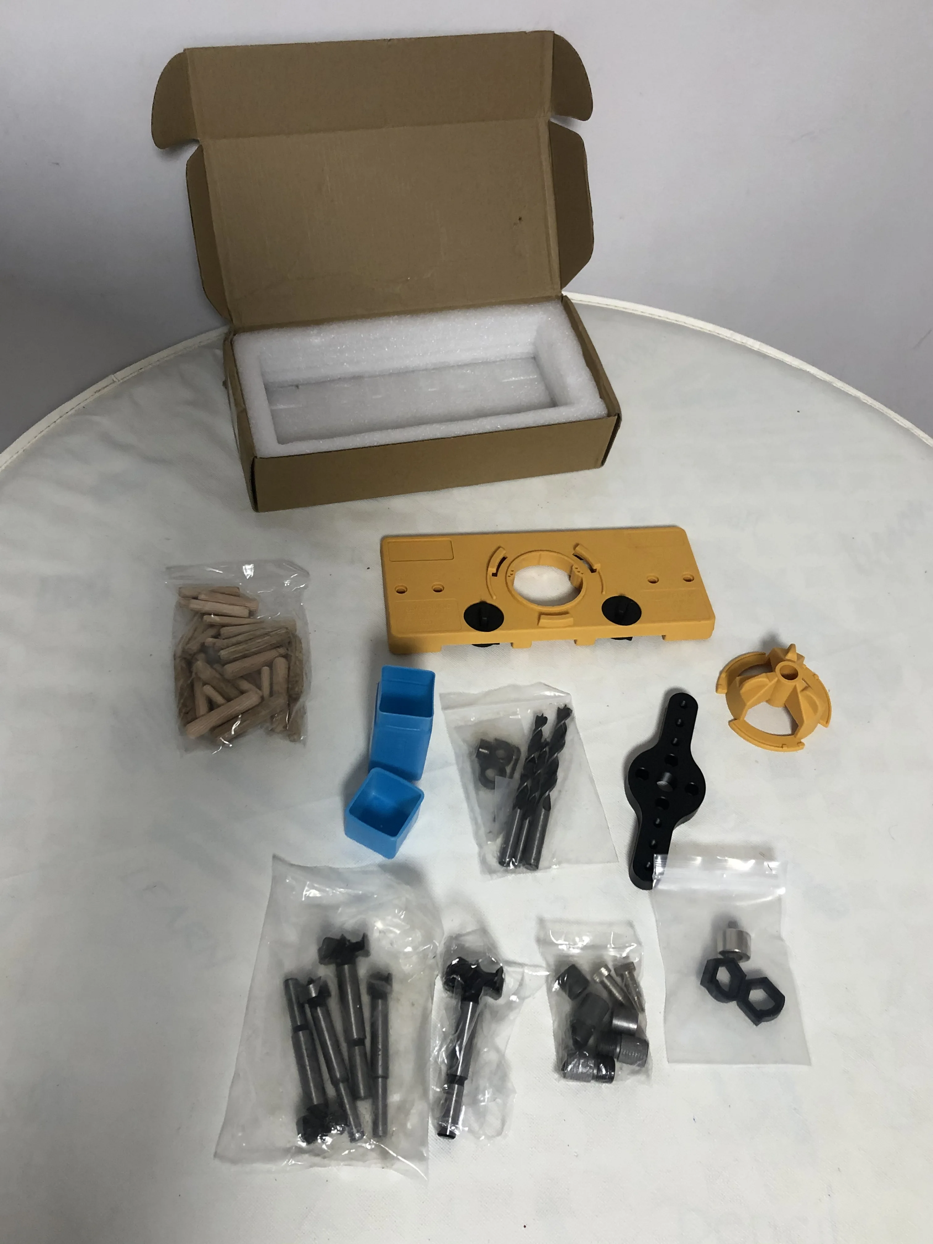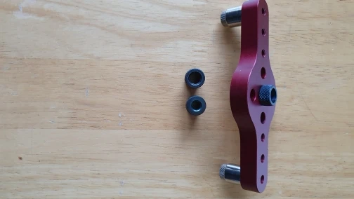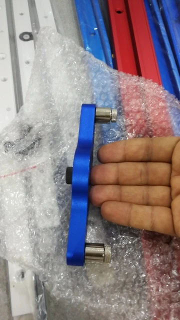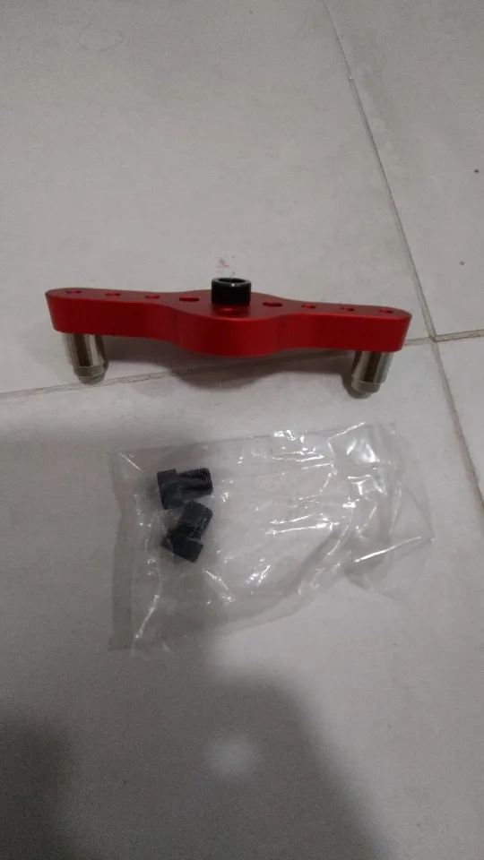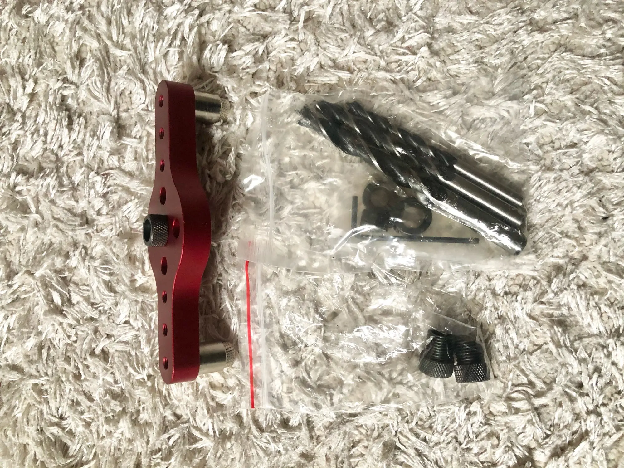 Брал для сверления толкателей(пуш) в 16мм лдсп. Но как всегда у китайцев задумка отличная, но постоянно что-то не додуманно. Могли бы сделать резьбу, под ещё две втулки в соседних с центром отверстиях, чтоб эти втулки было как хранить. А то пользуешься одной, а остальные валяются. Буду засверливать сам и проходить метчиком (металл вроде сплав какой-то с аллюминием). Да и ещё, для мебельщиков - если один ограничитель вкрутить в крайнее отверстие, а второй ближе к центру, то приложив кондуктор к двум 16мм дсп получим центр одного из этих дсп (это что-б засверливать отверстия если вместе две боковины стянуты.