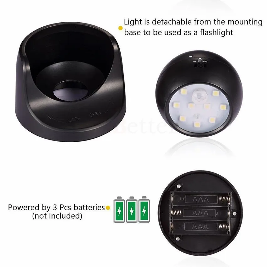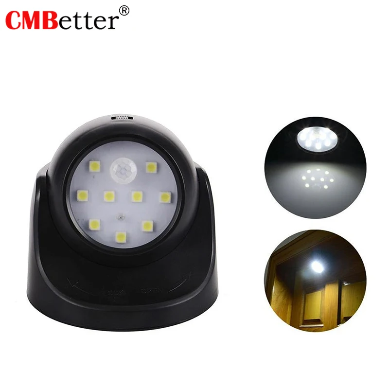 PIR датчик движения 9 светодиодный ночной Светильник вращение на 360 градусов беспроводной детектор Ночной светильник Настенный светильник Авто Вкл/Выкл шкаф светильник для прихожей