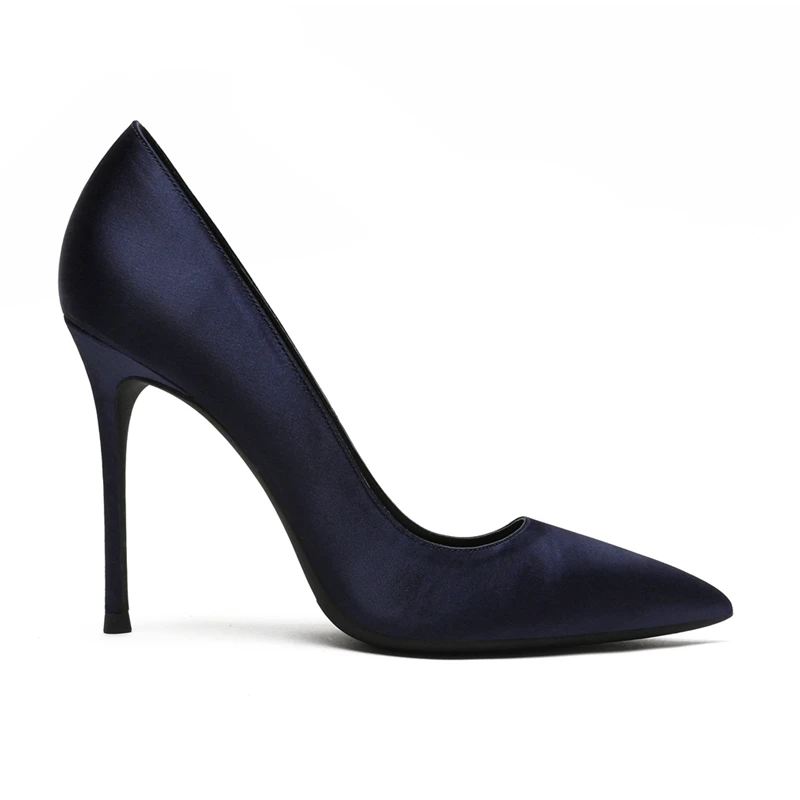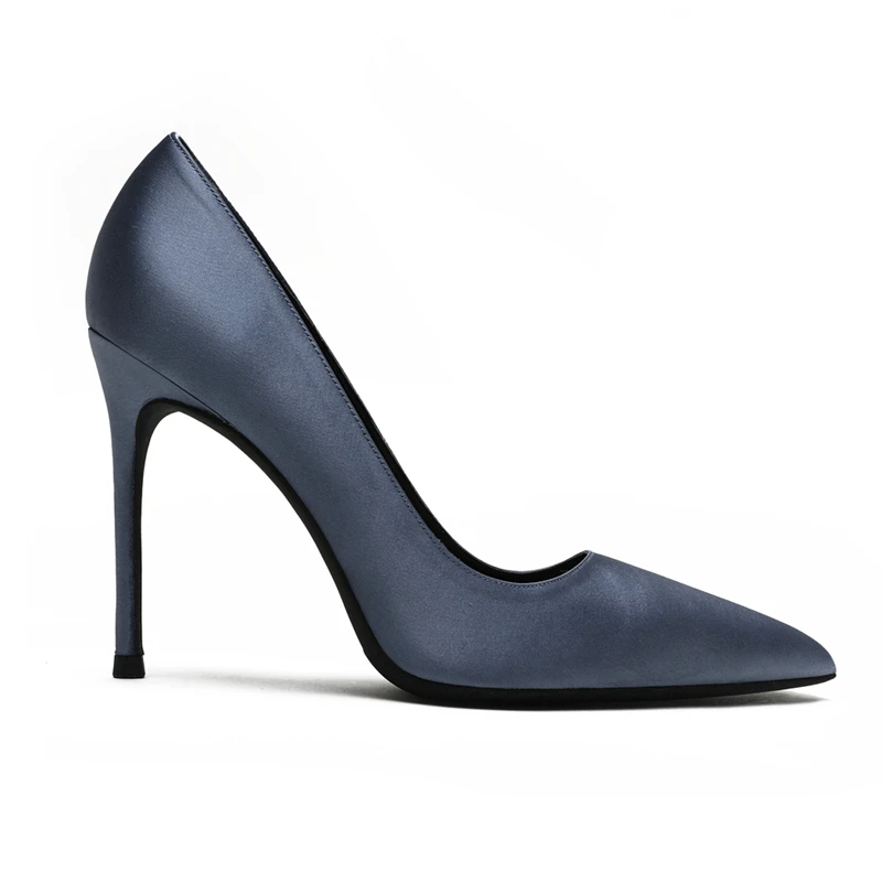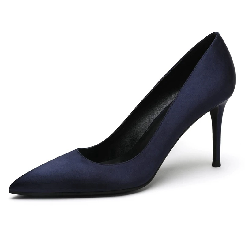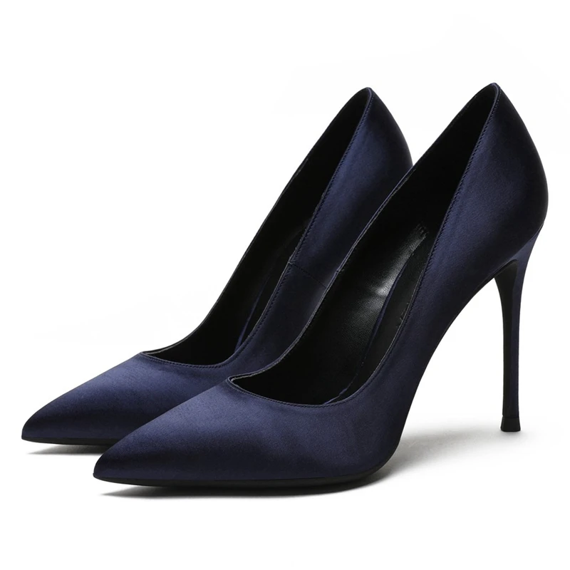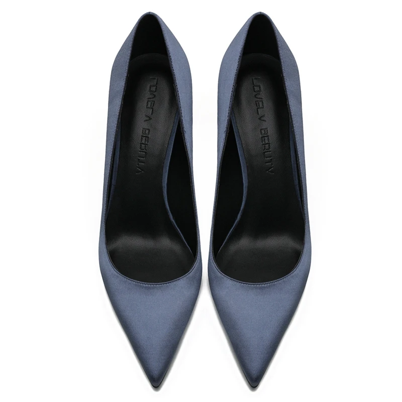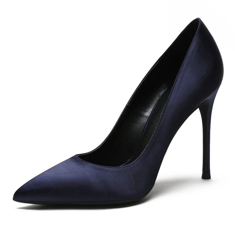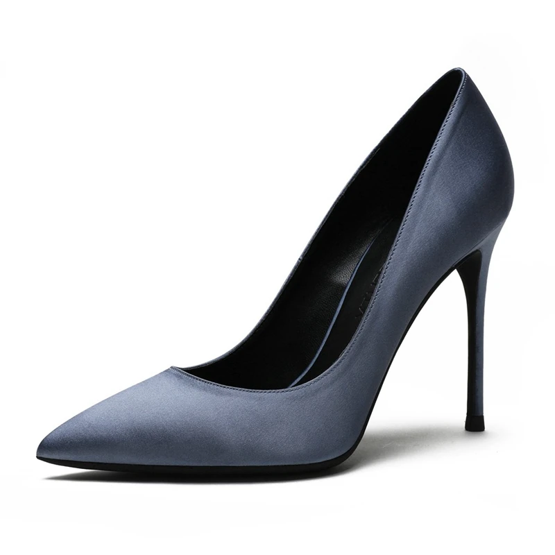 Женские туфли-лодочки; Туфли на каблуке; Пикантные туфли на высоком каблуке с острым носком из голубого шелка; Женские туфли на высоком каблуке-шпильке; Большие размеры 42; N0024