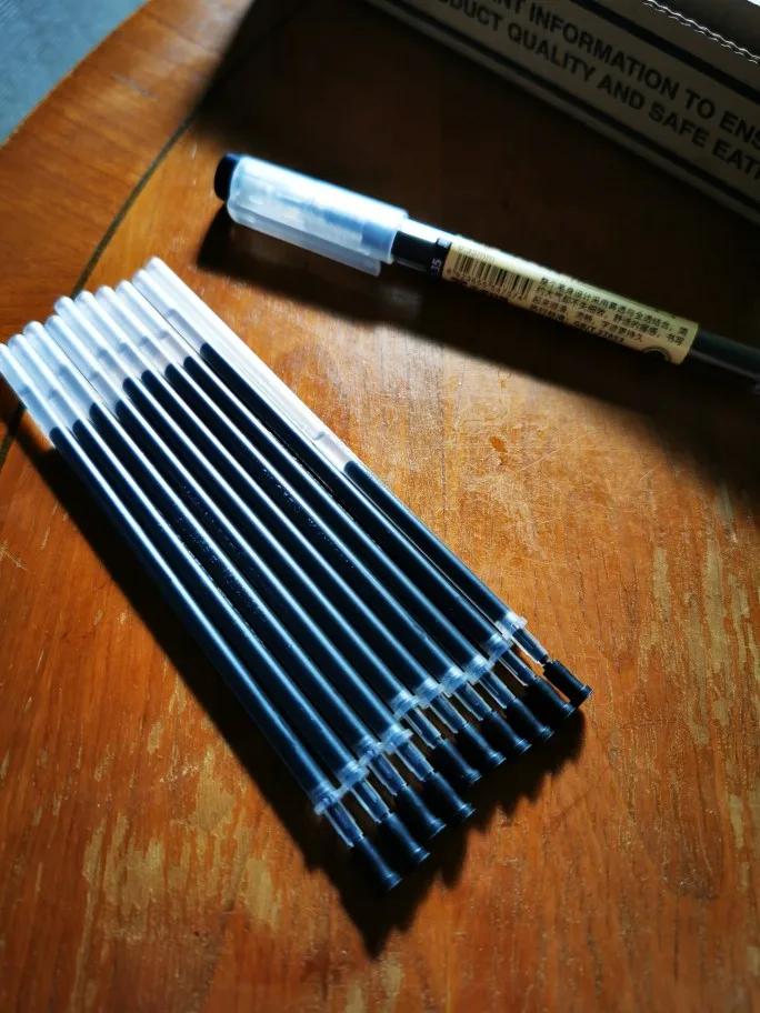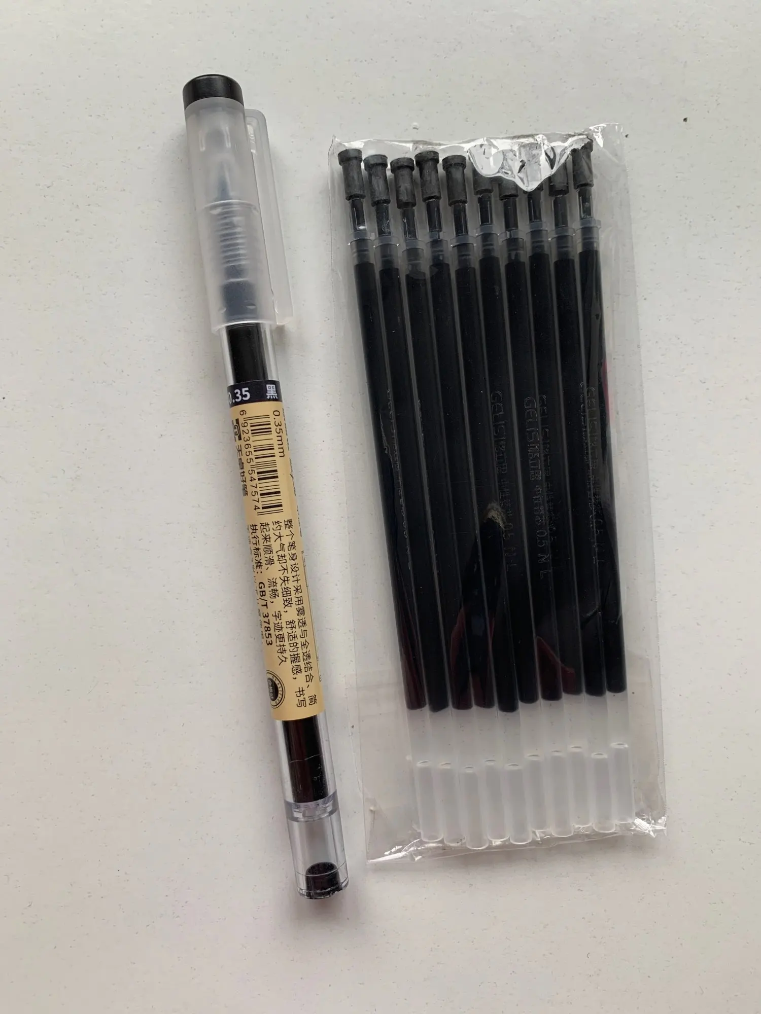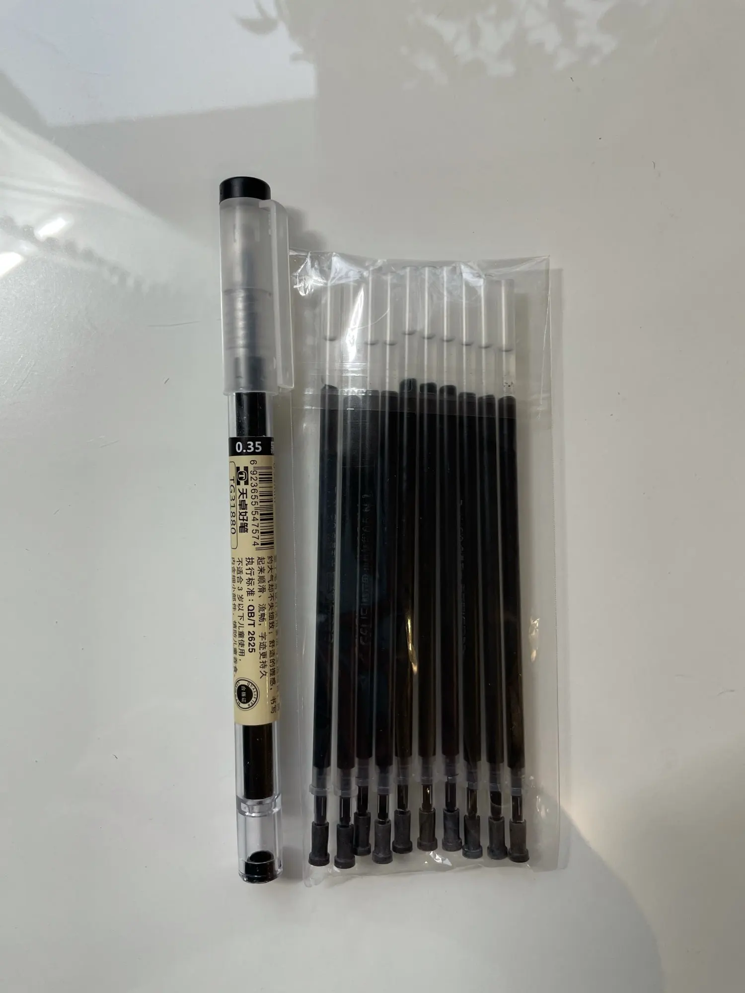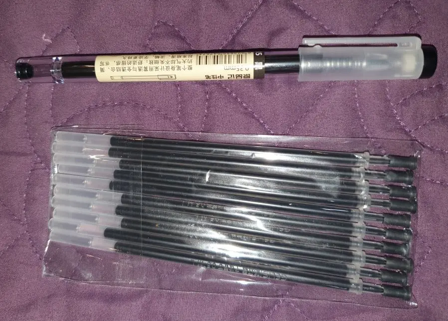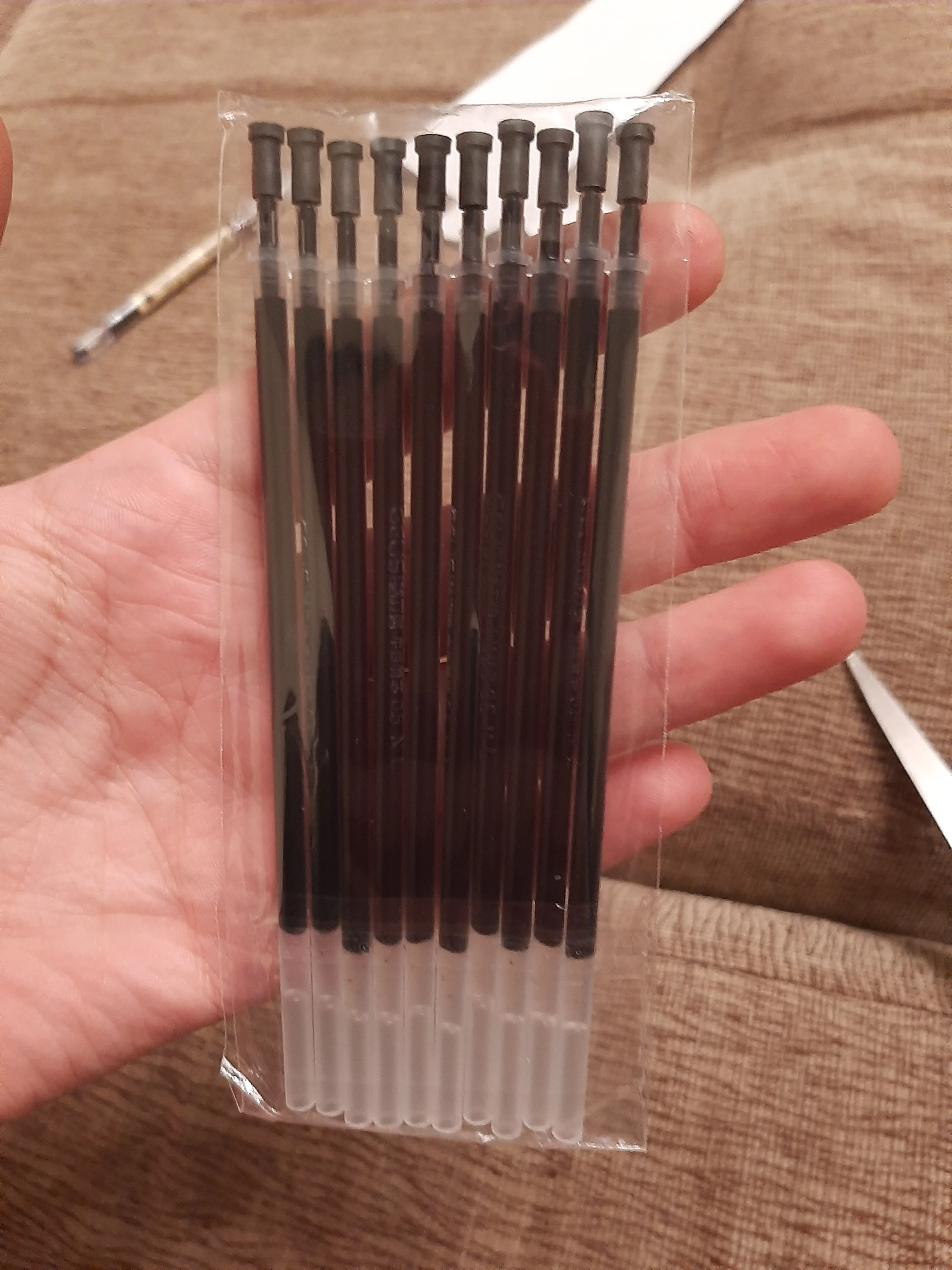Я действительно доволен тем, что купил. Единственное, я не уверен, что это 0,35 или 0,5, так как чернила говорят 0,5, но они выглядят тоньше. Но мне это не важно, поэтому я очень доволен и мне очень понравилось. Чернила уже работают хорошо, я надеюсь, что остальные тоже подойдут.