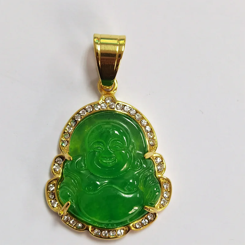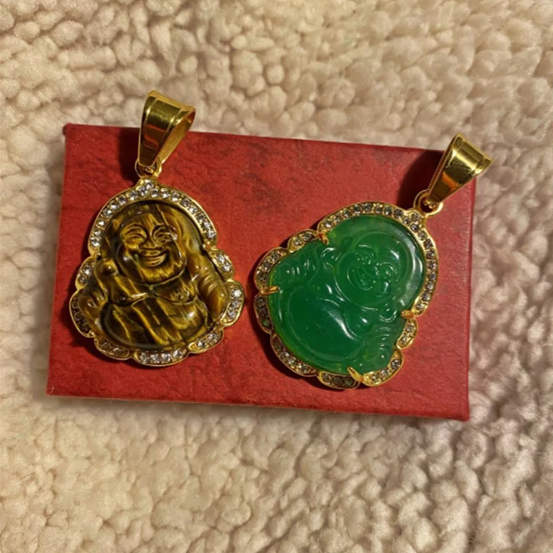 Золотое ожерелье Будды для женщин, кулон Будды Maitreya из фианита, ожерелье с драгоценным камнем, мужское ювелирное изделие из нержавеющей стали, Прямая поставка