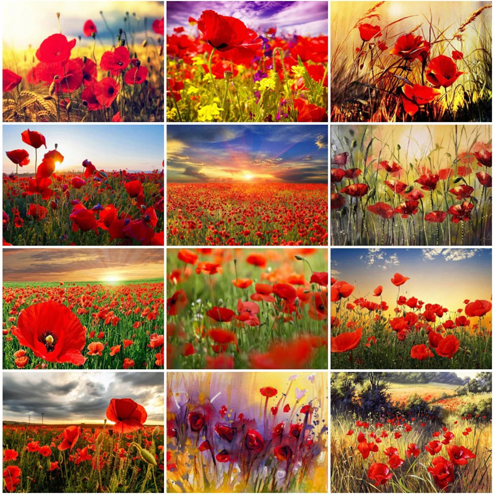 Алмазная живопись EverShine, полноразмерная 5D мозаика с цветами мака, вышивка бисером, стразы, искусство, домашний декор