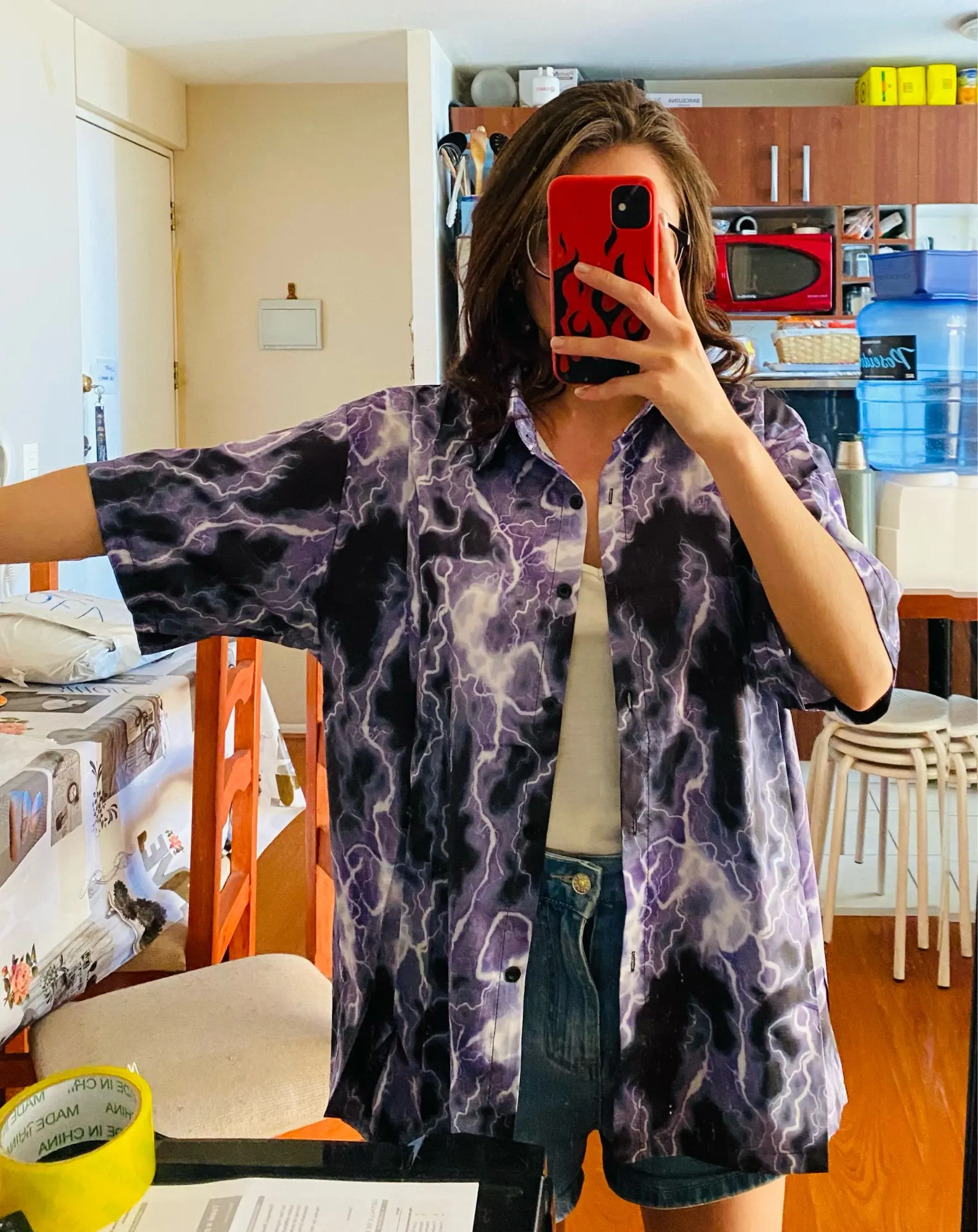 Рубашка довольно прикольная,очень легкая,летом будет не жарко.Материал похож на ткань от зонтика.На рост 170 брала xl,чуть ниже попы,можно было взять больше.Снимаю звезду за яркость принта.В жизни выглядит тусклее,чем на камере.Плюс торчат нитки.Заказ полностью отслеживался,отправили быстро!Хоть своих денег и не стоит,но в принципе советую