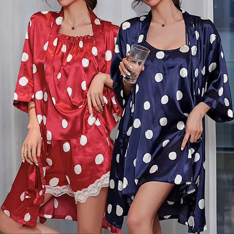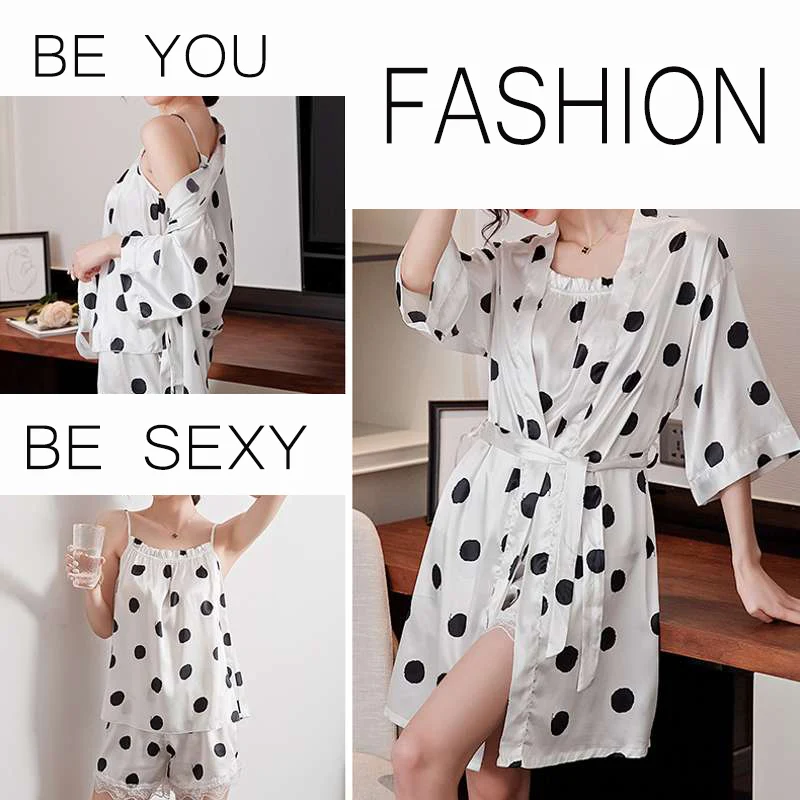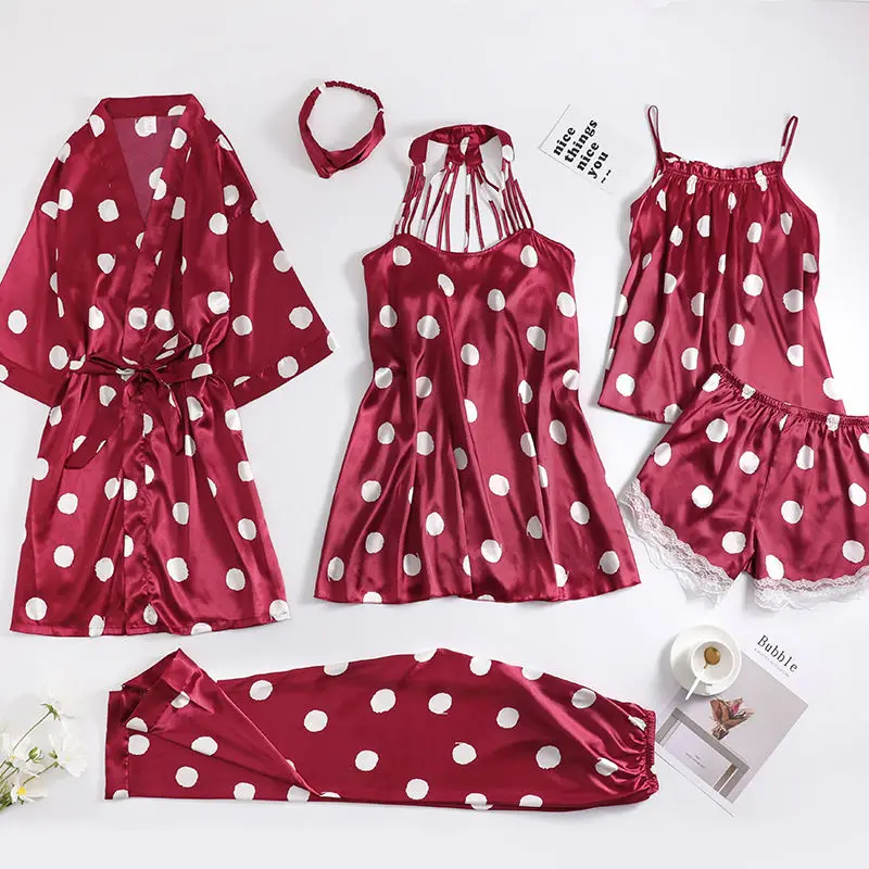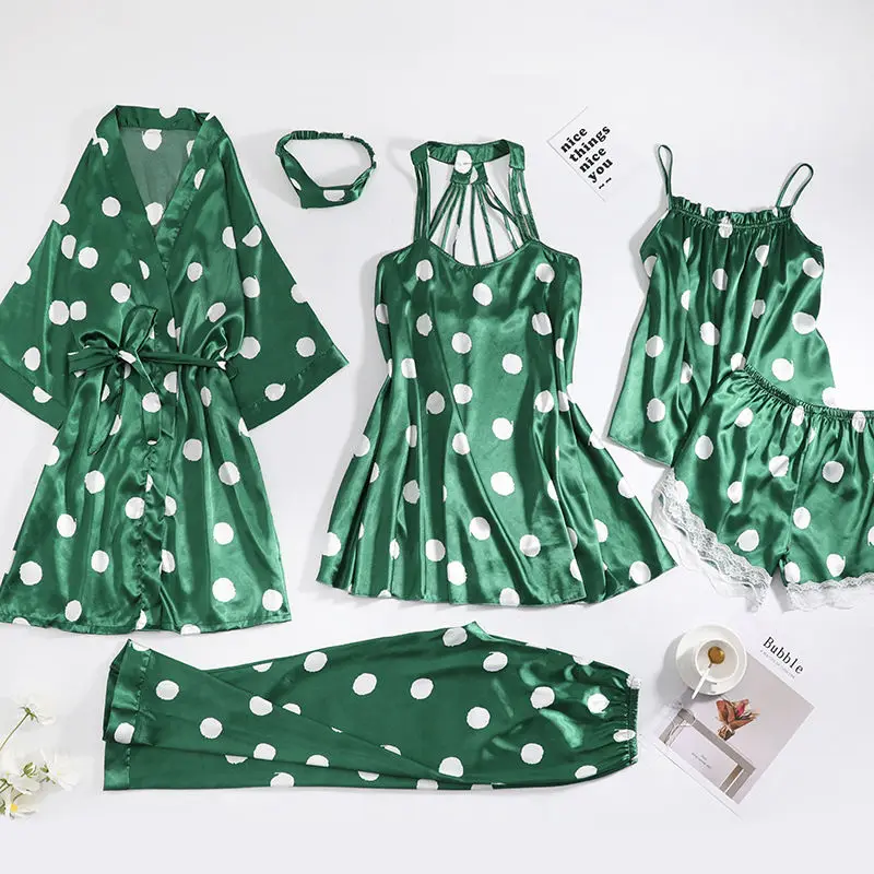 Комплект пижамный Женский, из 6 предметов, с принтом в горошек