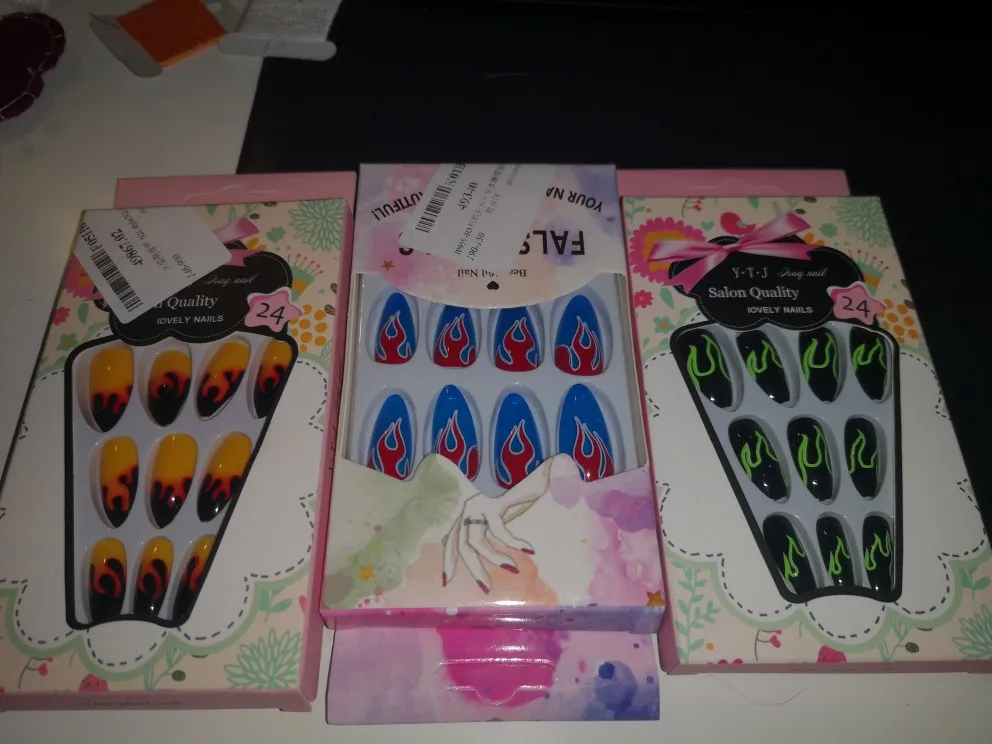 Вполне нормальные, длинные ногти, если смотреть с далека, не увидишь что они накладные. Чисто по приколу можете взять, ибо если заденете что то, ноготь сразу отваливается, не смотря на то что суперклеем мажешь (который в комплекте) 24 штуки. Приехали примерно за 2 недели в Киев, что удивило.