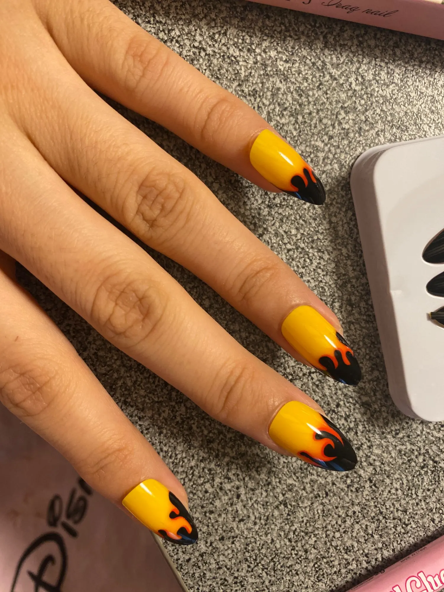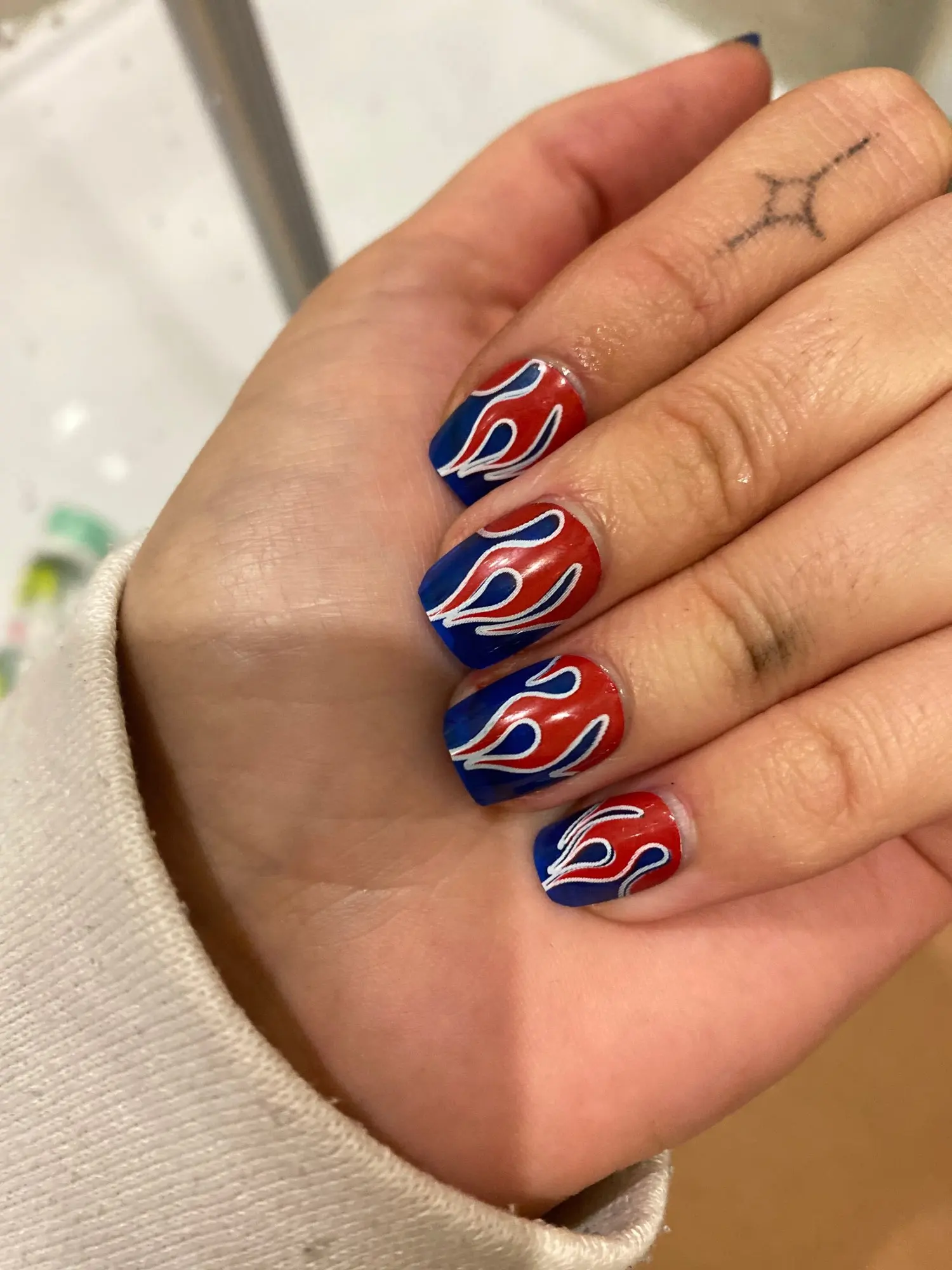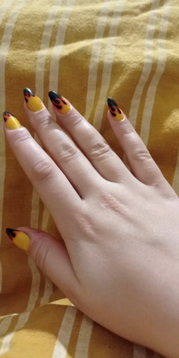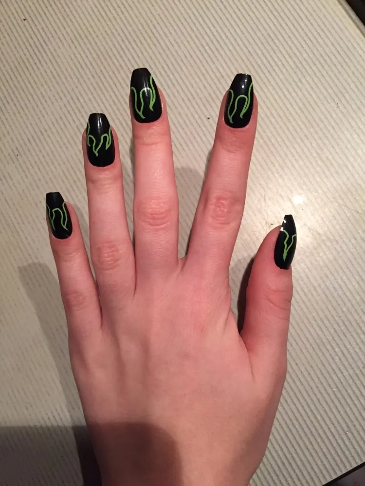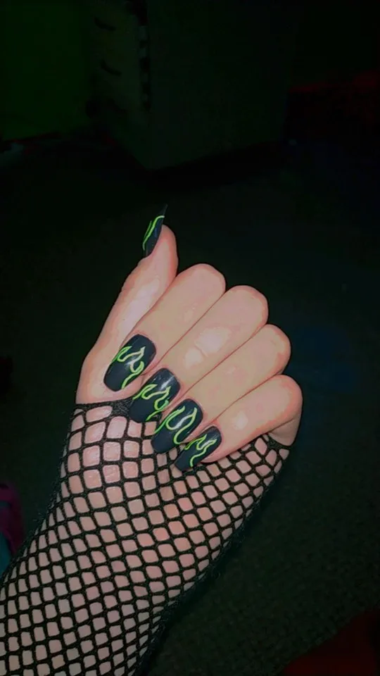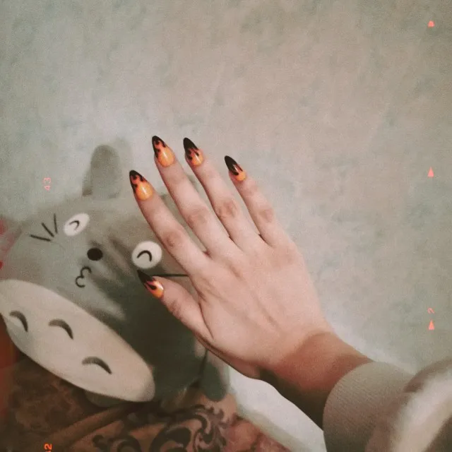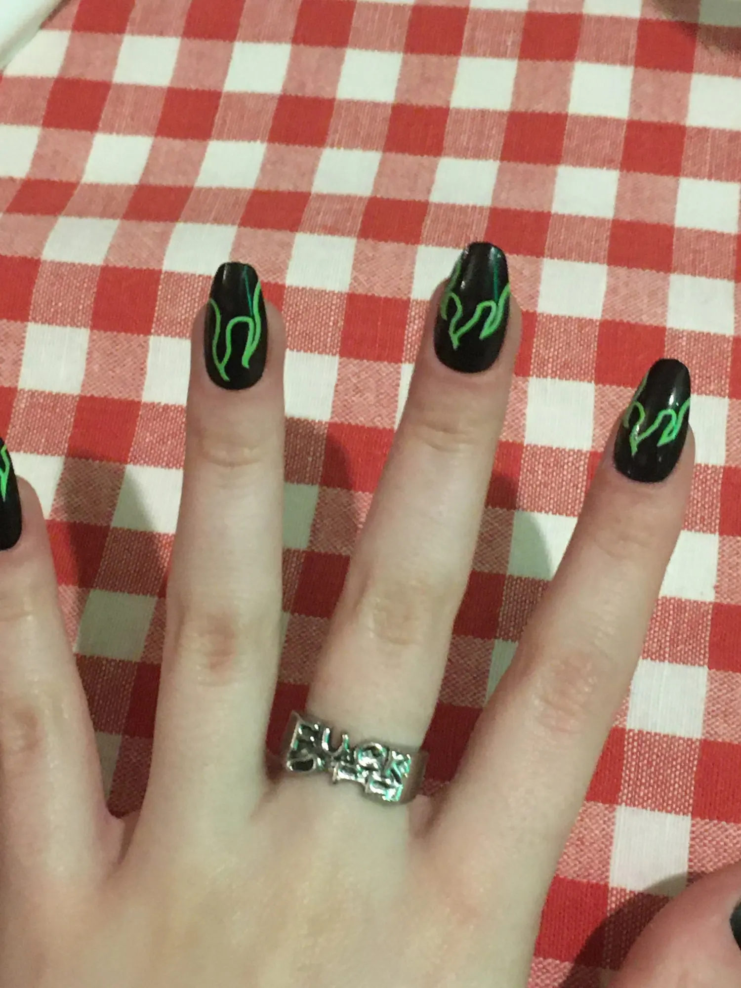 Вау. Какие ногти. Просто шик. Заказывала чёрные с зелёным огнём. Клей крепко держит. Спасибо,❤️