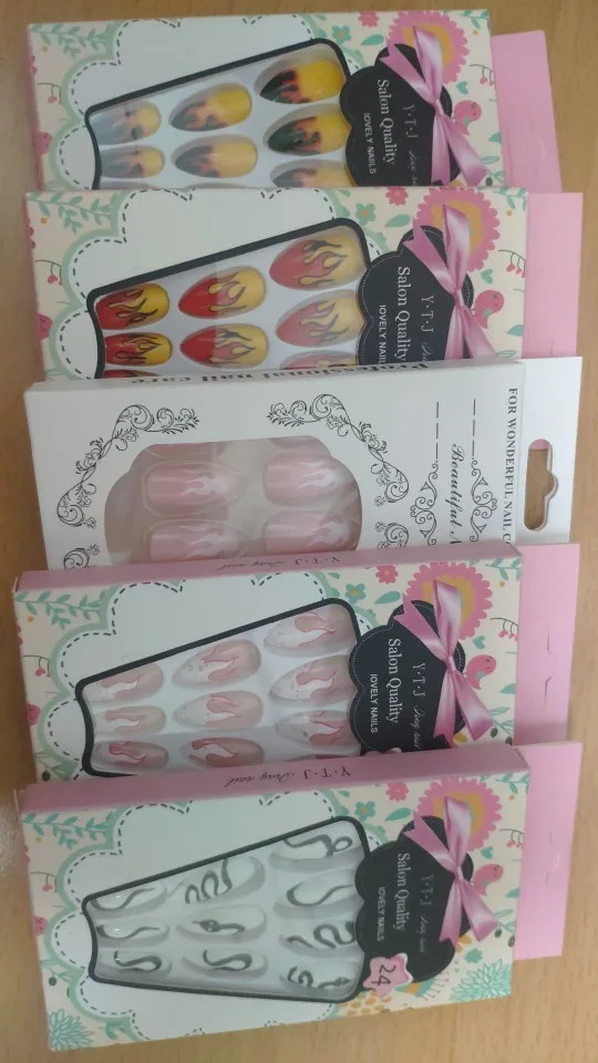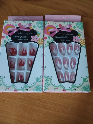 Ногти хорошие,печать узоров не сказала бы что супер ровная,но не плохо. Держатся на клею хорошо. В течение дня(готовка,нахождение в воде перенесли очень хорошо) ничего не отвалилось. Сами ногти выглядят достаточно естественно. Все устроило,рекомендую. Доставка быстрая.