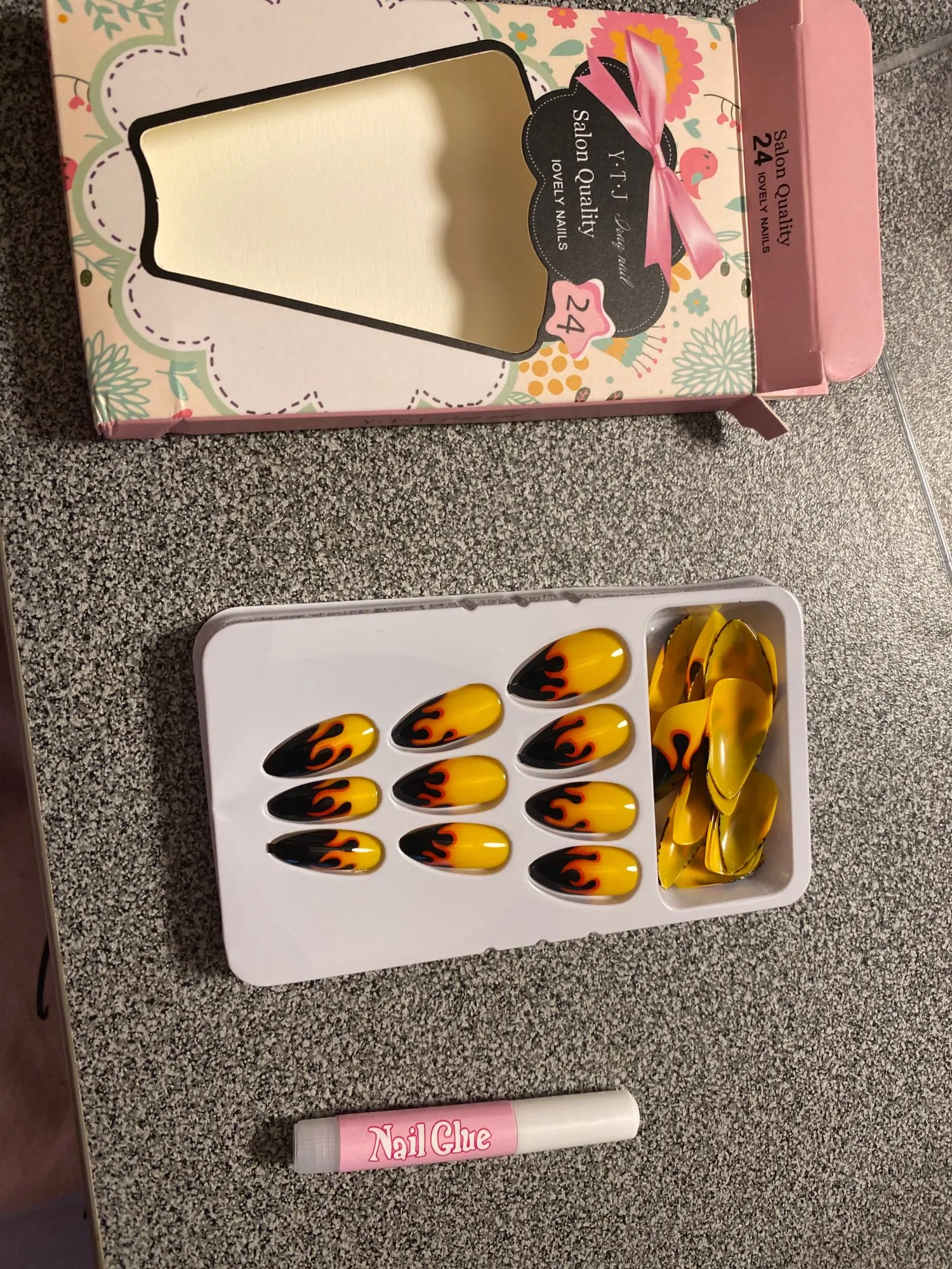 Первый опыт с накладными ногтями, поэтому, возможно, мне и неудобно. Размеры подошли, рисунок хороший. Клей был в наборе Пришлось подпиливать, острые и не очень приятный материал До Екатеринбурга за месяц